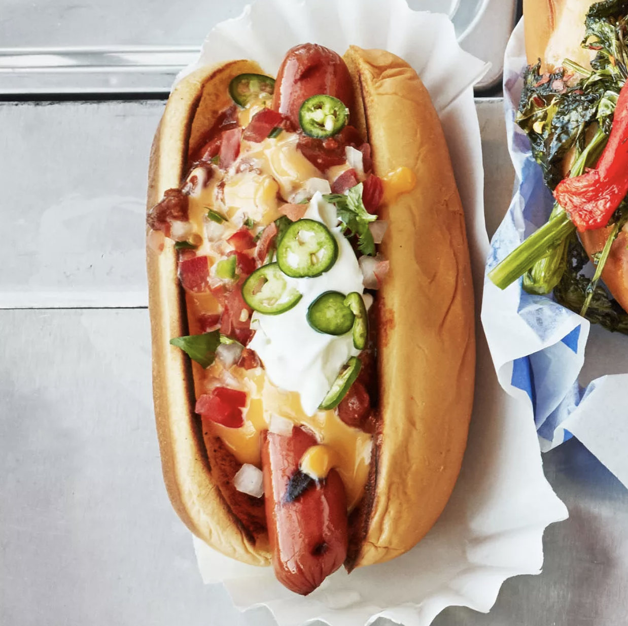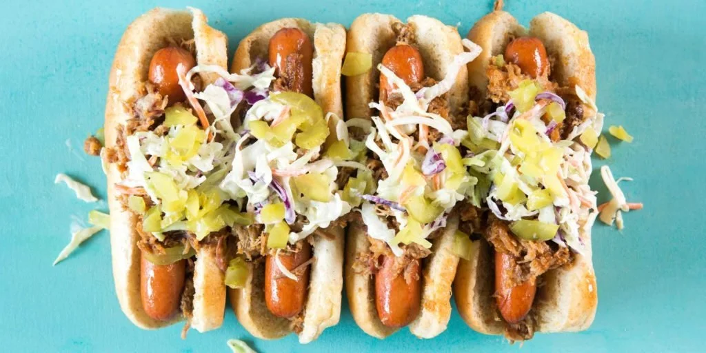 Calling all Southern football fans—this dog is a best of both worlds. If you’d rather have barbecue and potato salad at your tailgate but can’t bring yourself to grill all that meat prior to the game, here’s a tasty compromise. Pick up a pint or two of your favorite barbecue on your way to the game, and use it as a topper for a hot dog. We even put the coleslaw right on the dog because no barbecue dish is complete without the tangy side.