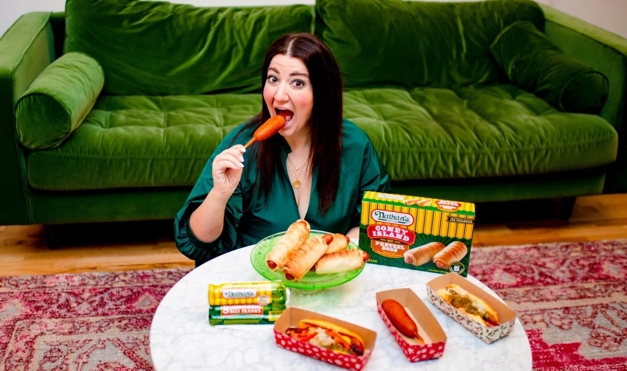 1 (8-count) pkg Nathan’s Famous Bun Length Skinless Franks, steamed or grilled