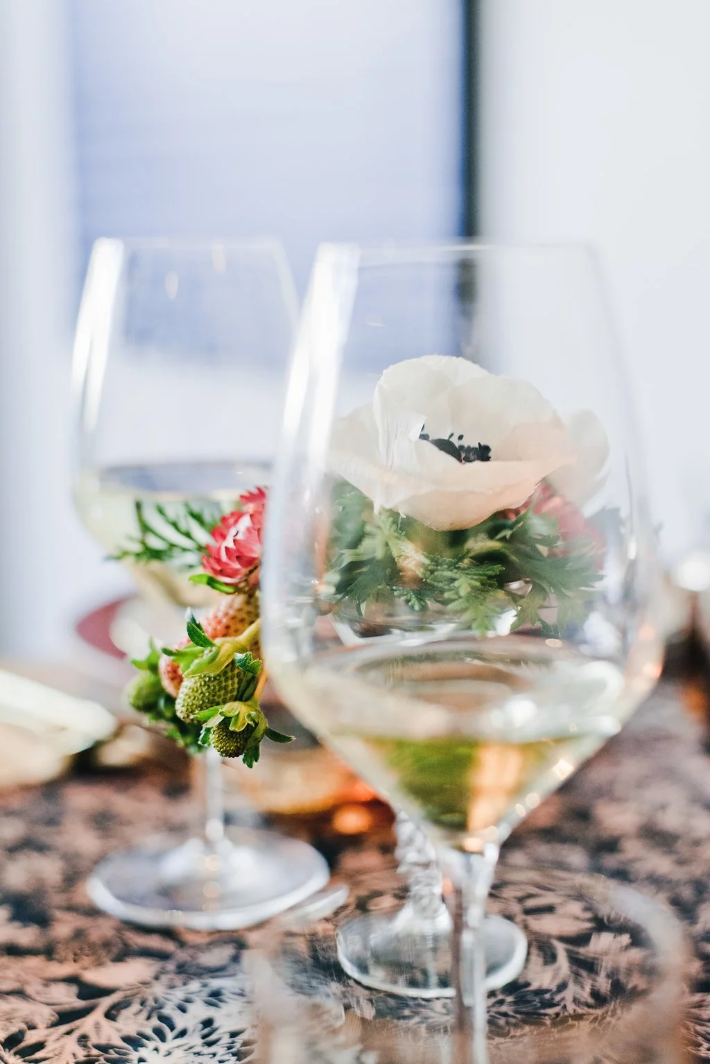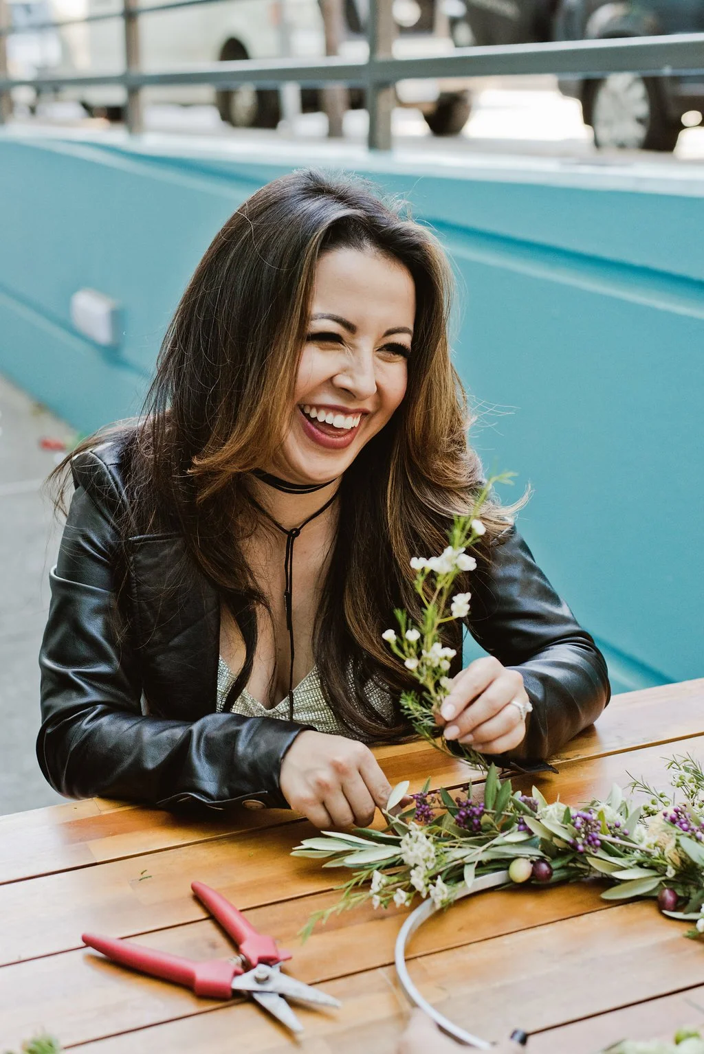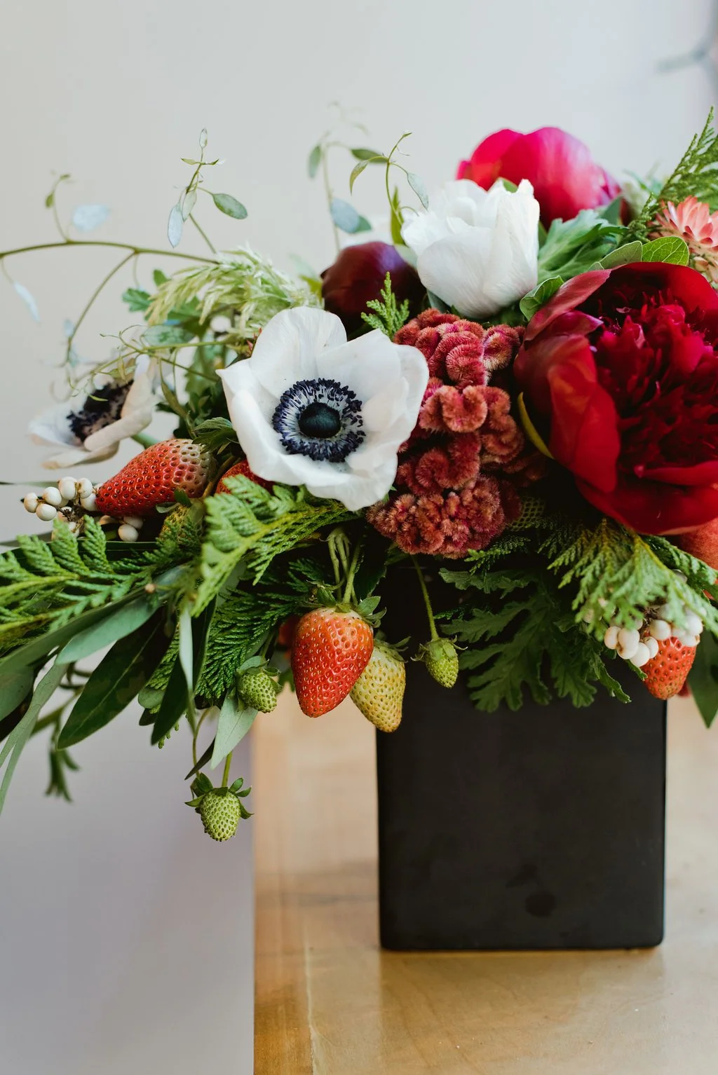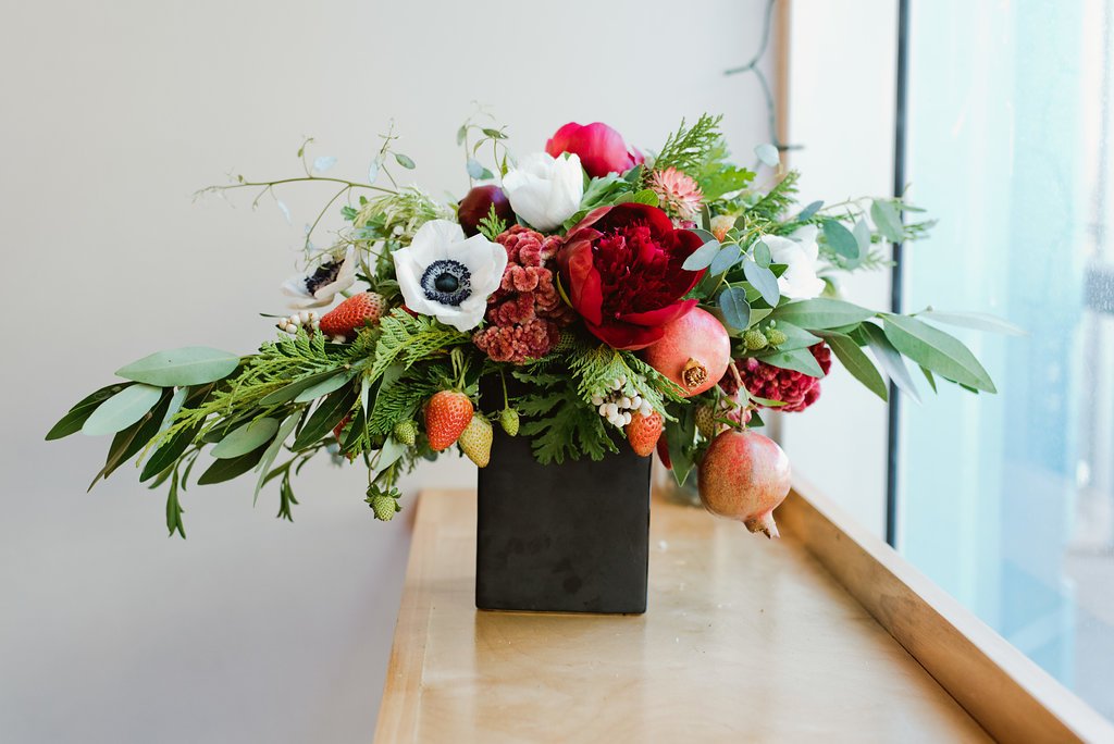 ProTip: always incorporate some type of interactive activity for the guests. In this case, I wanted it to be DIY-related. I've worked with the amazing Keegan (owner of Petal Atelier) for over a year now, collaborating on different projects, and she knew exactly the route I was wanting to go down. She suggested a DIY floral wreath station. I wanted the aesthetic to be neutral enough where it didn't scream Christmas at you, so we went with very earthy florals and greenery for these wreaths. The girls had an amazing time using the tools and creating some fun wreaths to take home. PS: How stunning are those bigger bouquets with strawberries, pomegranates, and anemones?! We were jaw dropped at their beauty.