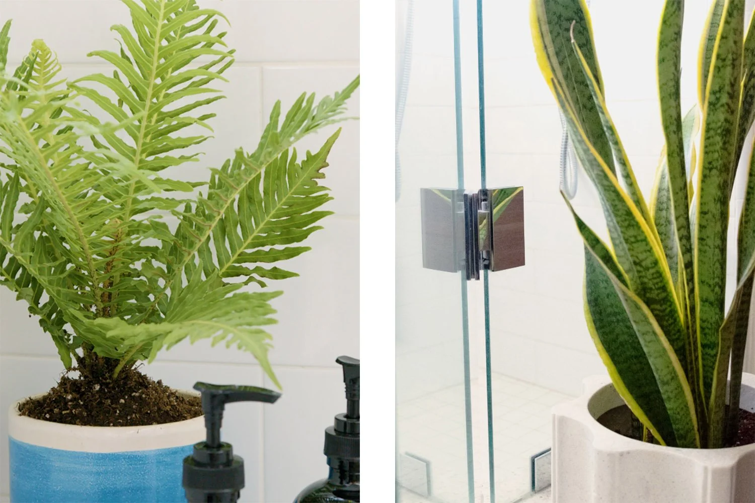 Think your bathroom is a lost cause when it comes to green-ing up your space? Think again! It’s often overlooked as a plant haven, but your bathroom is actually the ideal environment for a number of indoor houseplant species — hello, humidity! Not only do plants in your bathroom warm up the space and make it more inviting, they also clean the air and provide a number of healthy benefits. But not all plants are candidates for this space, as you might know from trying to put that cute cactus on your vanity that one time (RIP). But plants that thrive in low light, high humidity, and small spaces are your best bets.