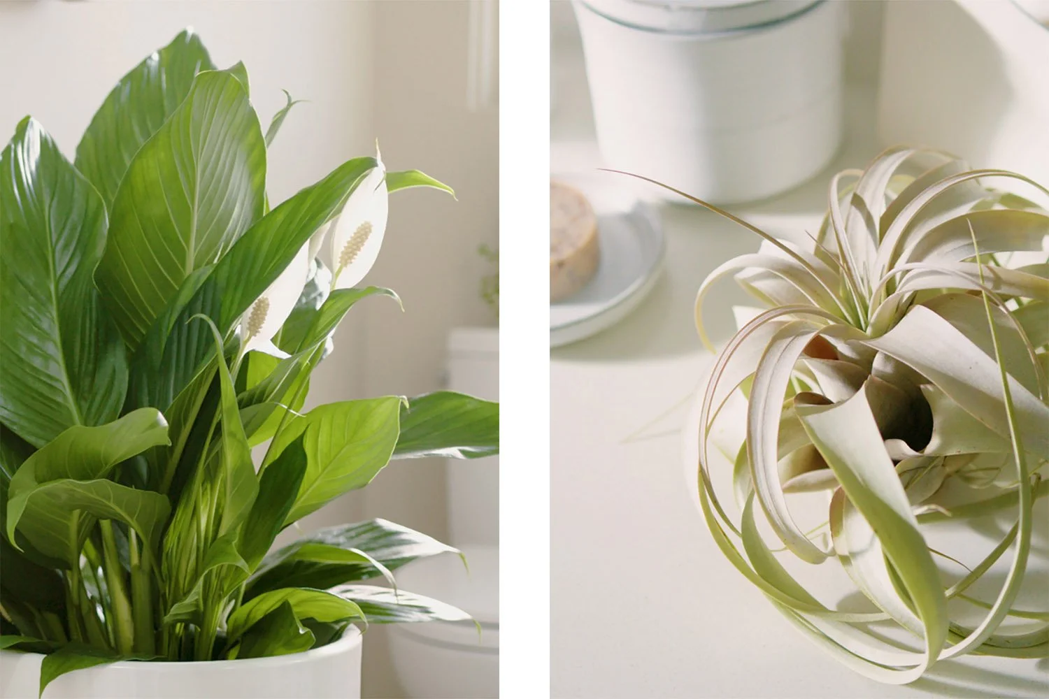 2. Air Plant — The kiss of death for any air plant is lack of water. Therefore, the bathroom is a great place to keep them, as they can soak up all the humidity from your shower on a daily basis (although they still need a real spritz once a week). They’re also super-flexible as decor since they don’t need a pot, and can just hang out on your vanity and look cute.