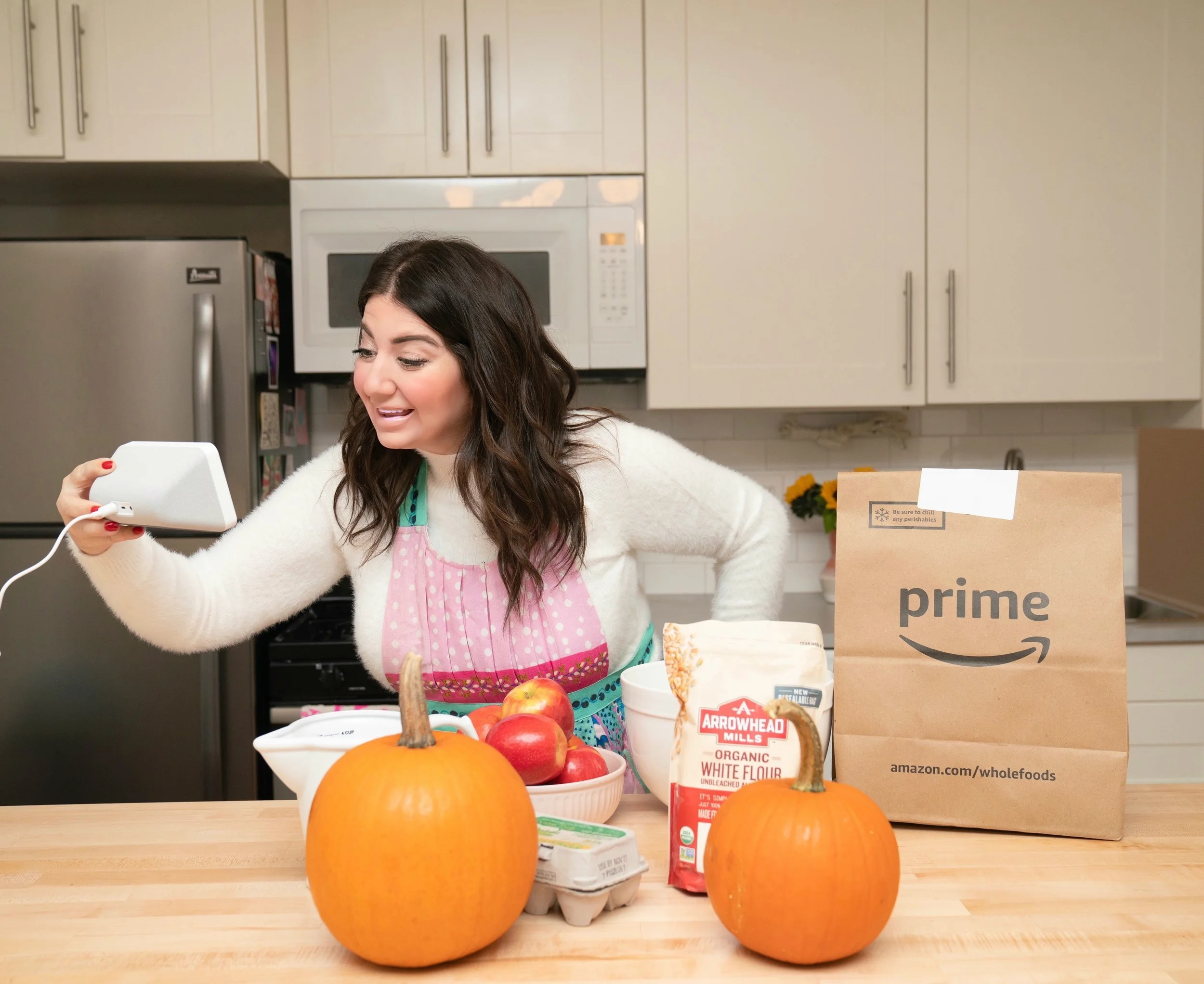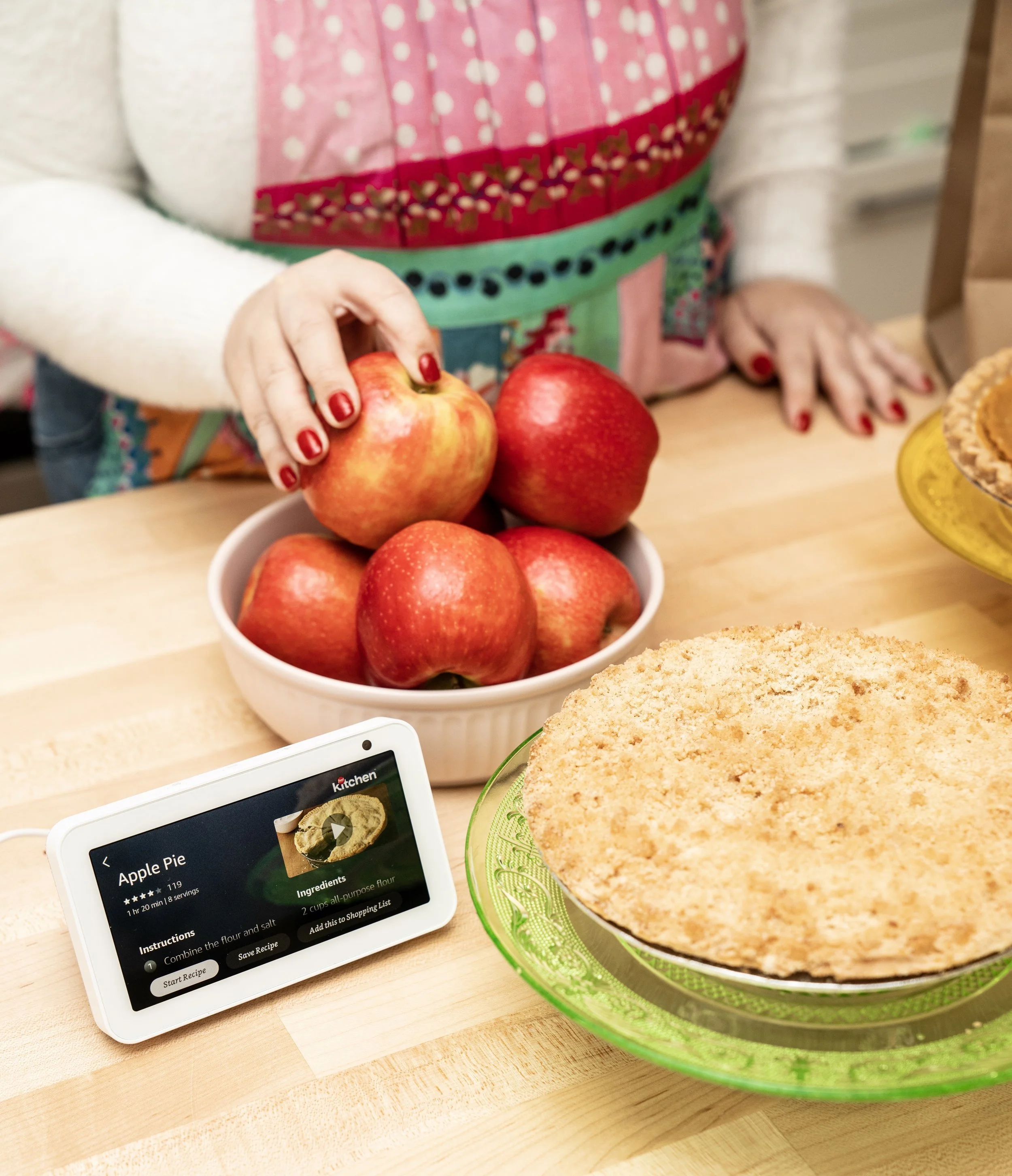 This holiday season, Alexa (by way of all the incredible gadgets by Amazon) is making my life easier, healthier and happier! In preparation for the Thanksgiving party circuit, my Echo Show 5 + I baked an Apple Crumb Pie AND a Classic Pumpkin Pie. The best part? I got help from the Food Network Kitchen, that offers on-demand cooking classes and live weekly cooking classes led by top Food Network chefs like Giada De Laurentiis, Martha Stewart, Guy Fieri, Alton Brown, Ina Garten, Ree Drummond and more chef superstars. You read that right, Virtual BFFS––Alexa brings all of these amazing culinary stars to your own kitchen all through Echo Show.