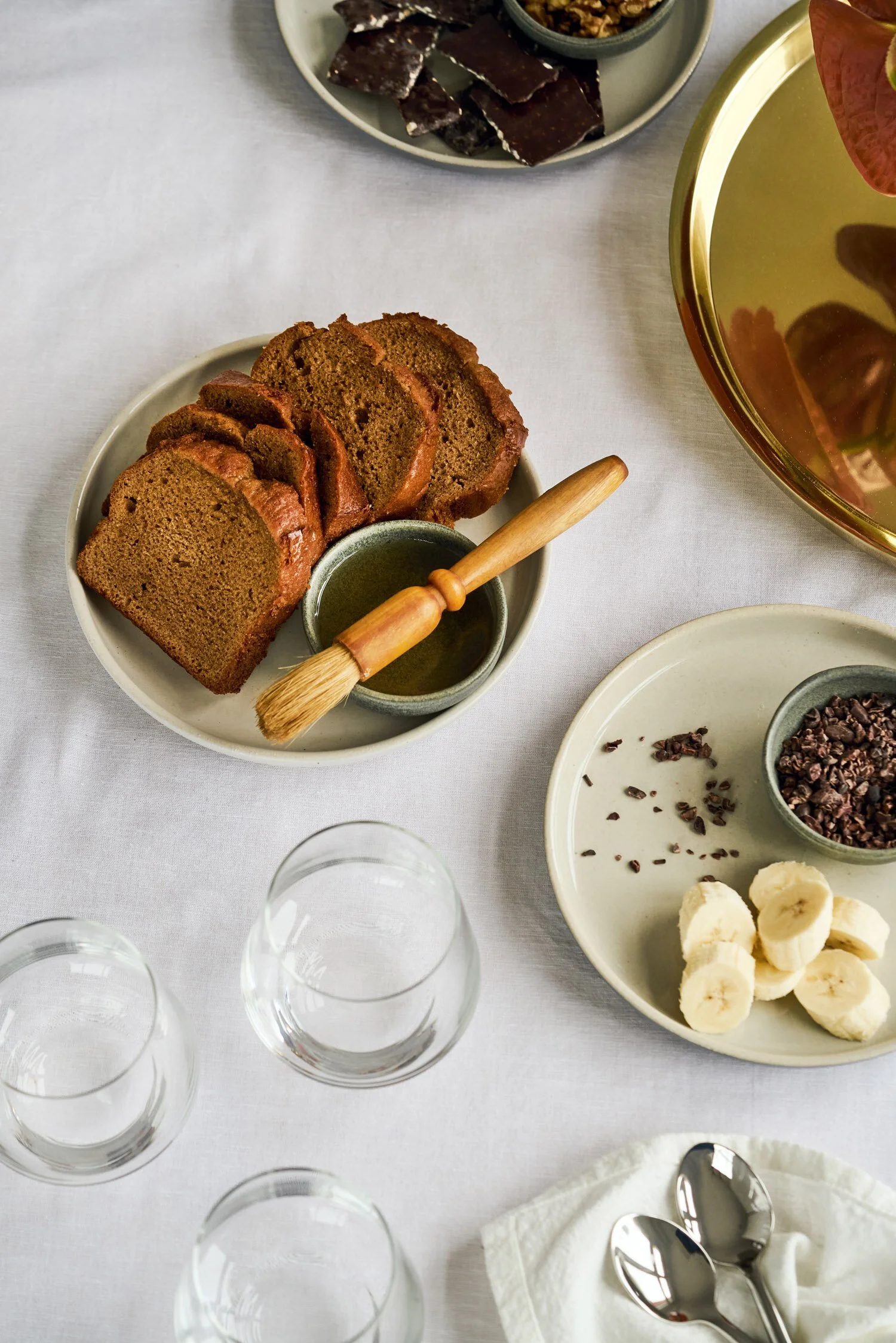 To turn this banana bread into something new and delicious, I wanted to make something you could do with mostly items that are all ready to go — except for a super easy chocolate mousse, which is actually fun to make — so you can assemble and eat! No need to keep you waiting on dessert while you’re binging your favorite shows or video conferencing with friends.