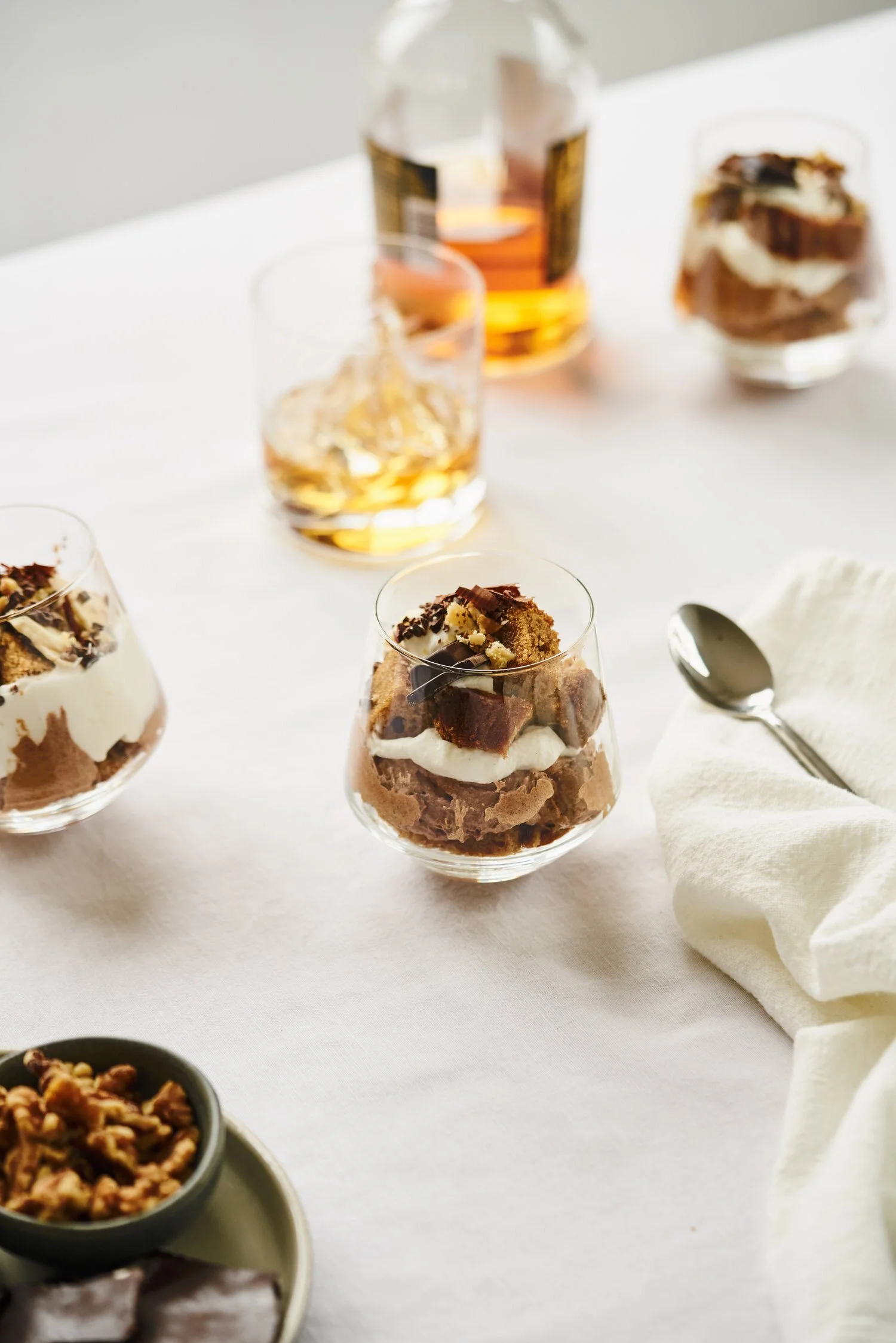 Boozy Banana Bread Chocolate Whiskey Trifles