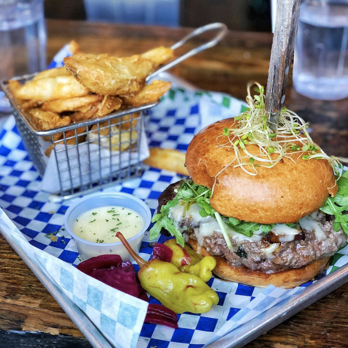 Ok, so I definitely came here for the Instagram worthy wallpaper...but I stayed for the burger (that chef Dante Cecchini only serves on Tuesdays). Previously at Marlowe, Cecchini couldn't alter the infamous winning burger formula, but added his own twist. Cecchini has substituted a secret,1000 Islands-inspired sauce for horseradish and good old-fashioned (and good quality) American cheese for high-end cheddar, a great complement to a 6 oz. B&N Ranch ground beef patty served on a poppy seed bun with sour pickles and grilled onion. You need this burger in your life. Trust.