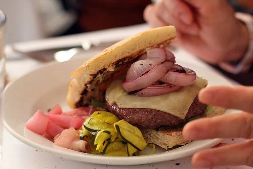 The burger at Zuni is organic, grass-fed, Ivy League-educated (we presume), and an all-around high achiever. It comes on rosemary focaccia bread and is topped with Vermont cheddar - all of which is a mouthful to say, but an excellent mouthful to eat. Zuni also has hands-down the best fries in the city, with potatoes probably harvested from an English rose garden, so definitely order them as a side.