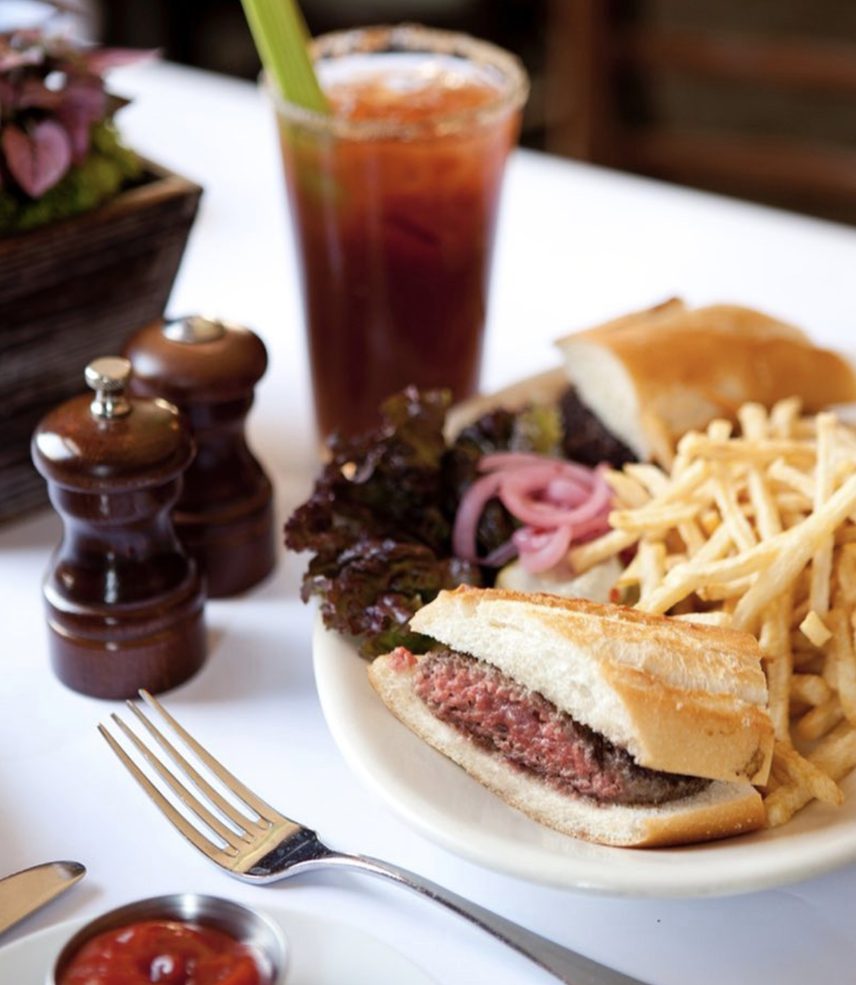 At Monsieur Benjamin there’s only one burger on the menu, but with a name as fancy as this restaurant’s, anything else would be too over the top. Despite really just being a patty and a bun, they describe their burger as “fully dressed.” We can only assume they mean dressed in flavor - this is one of the best burger patties you’ll find. And it can stand on its own without any unnecessary frills. Mademoiselle loves it.