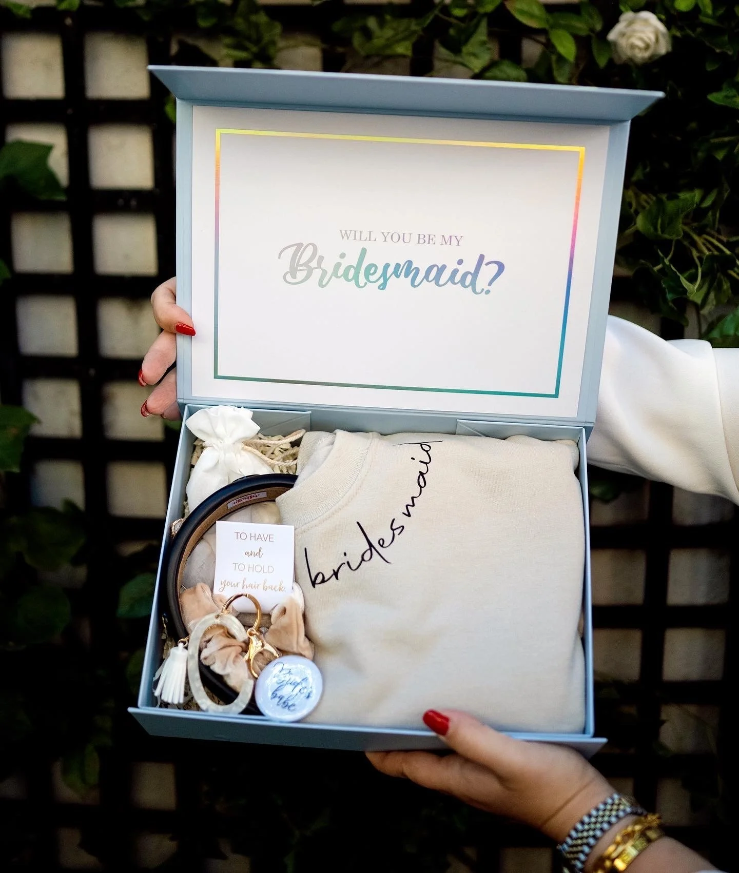 It’s official—there's a ring on it! Now it’s time to start planning. First things first—rallying your bridal squad to support, celebrate, and share this epic wedding journey with you. Wondering how you can ask them to step into these oh-so-special bridal party shoes for you? Gifting them a bridal party proposal present is a special way to show them how much they mean to you.