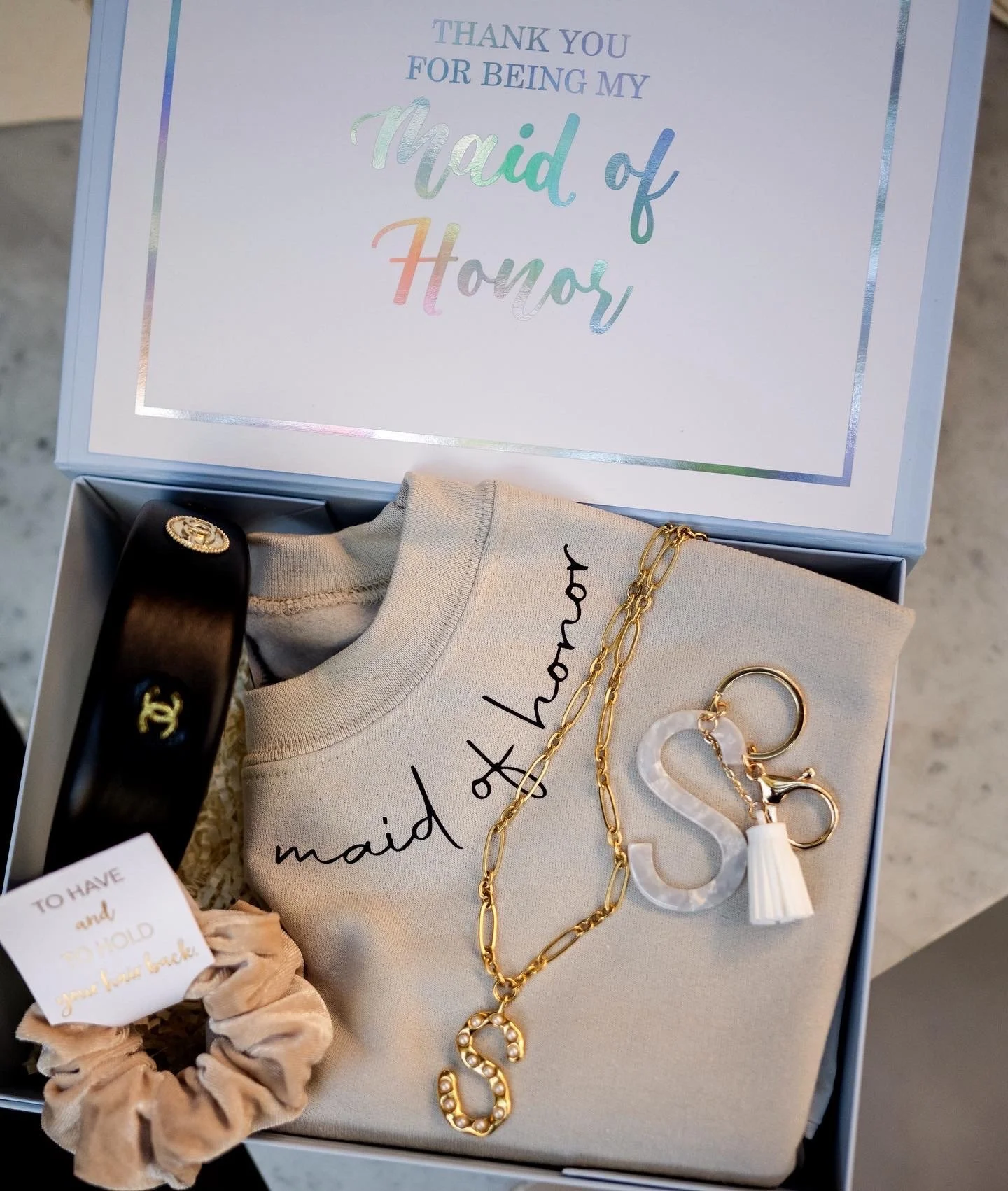 To Have and To Hold My Hair Back Scrunchies | Bridesmaid Proposal Boxes