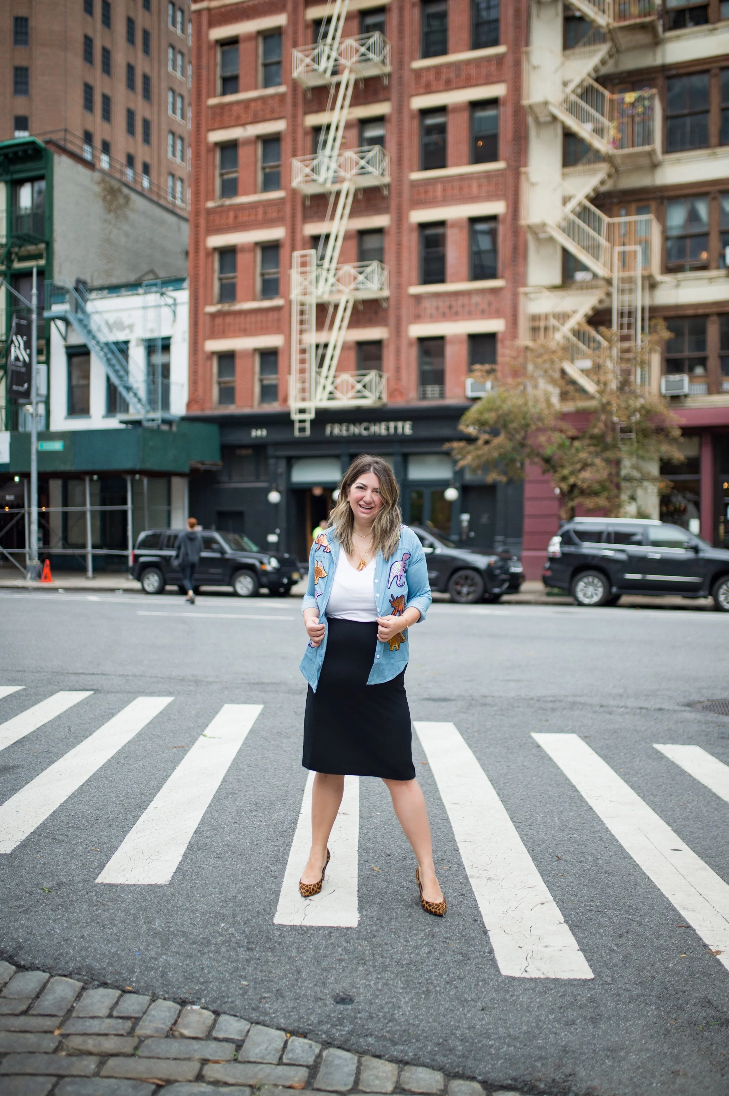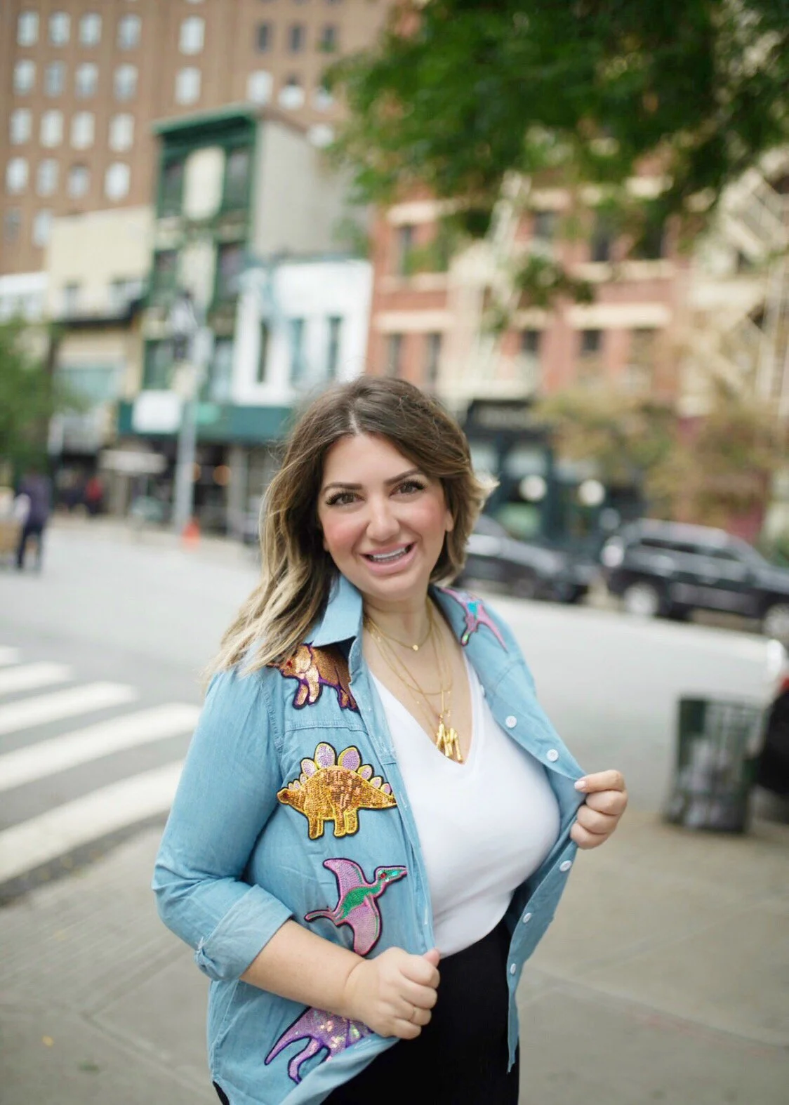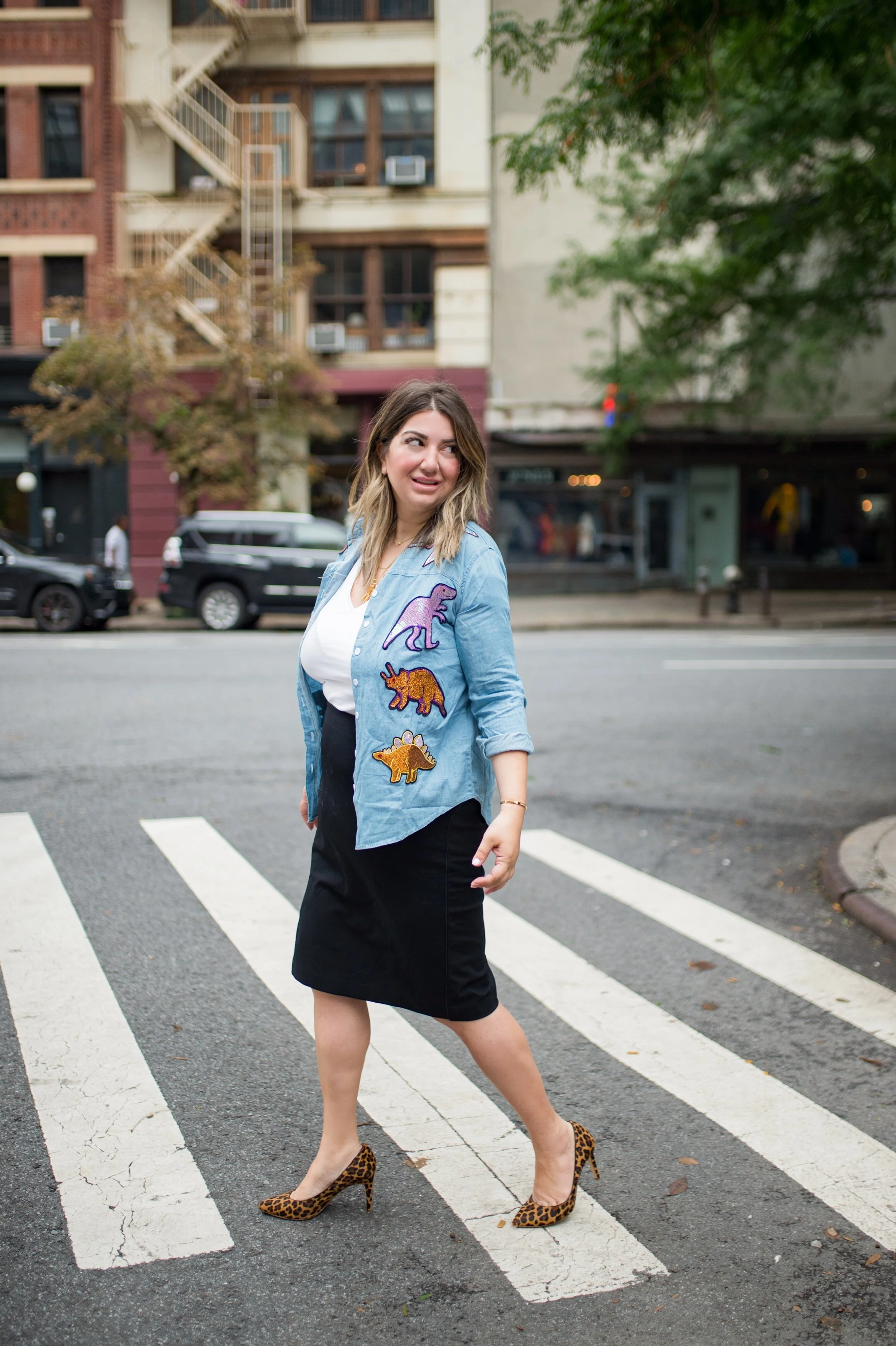 Who said business casual has to be stuffy and serious? I’m a big believer in having fun with fashion and wearing things that make you feel just as sparkly on the inside as you do on the outside. So, when I found this dinosaur (I’m v obsessed with paleontology) sequin chambray shirt from SheIn, I just had to have it.