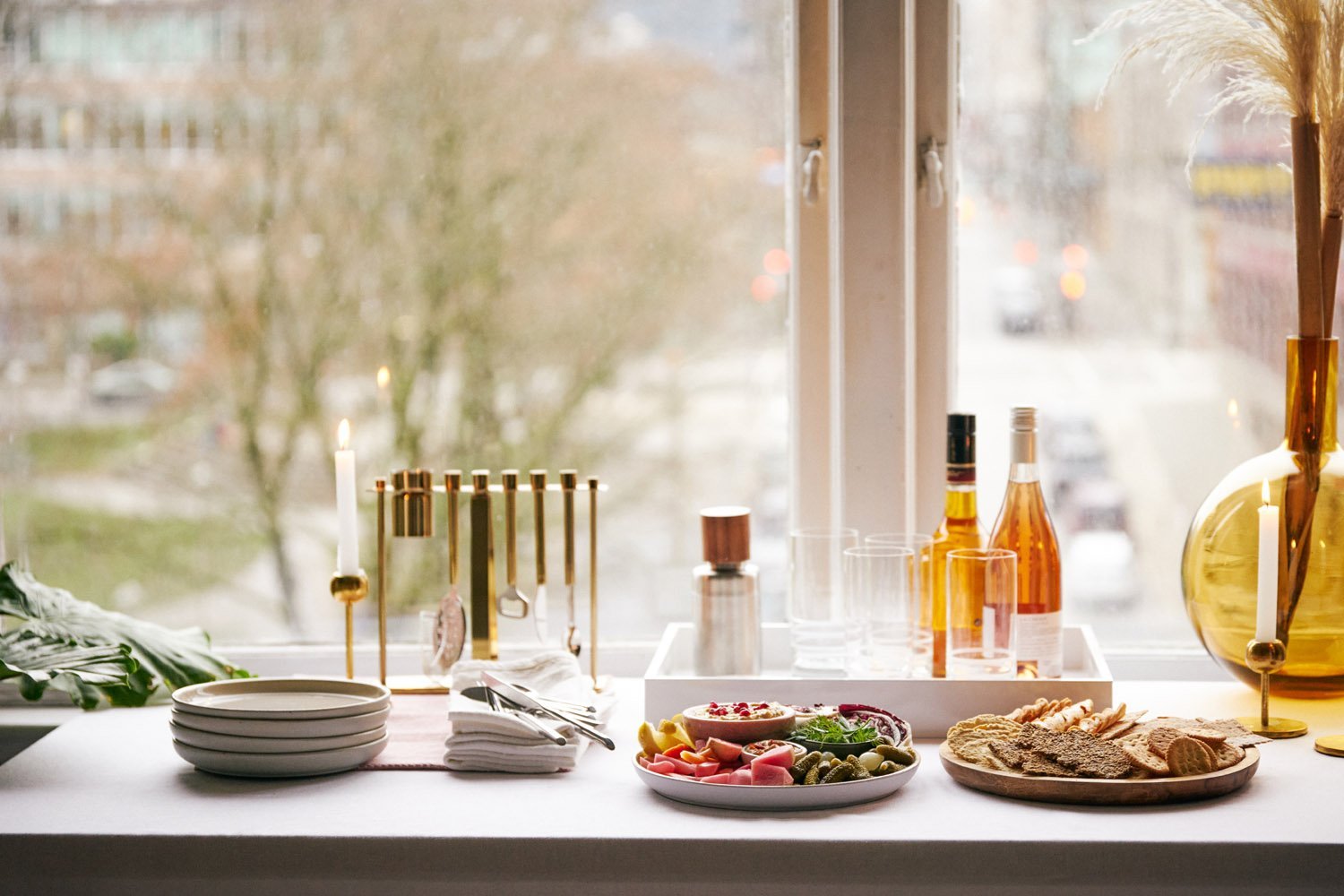The key here is to serve this with nice specialty crackers, mixed with a sprinkle of the classics. And of course, you can’t forget the veggies–a nice melange of crunchy veggies, either quick-pickled or raw. Trader Joe’s has this cute pack of colored carrots that make everything even more adorable.