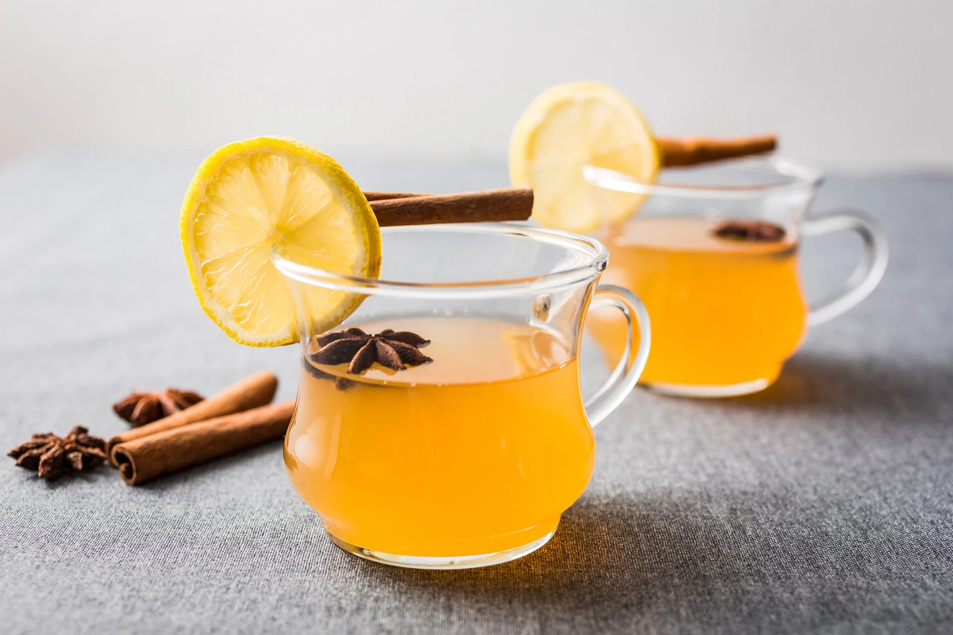 Cinnamon stick, allspice cloves, and apple slices for garnish