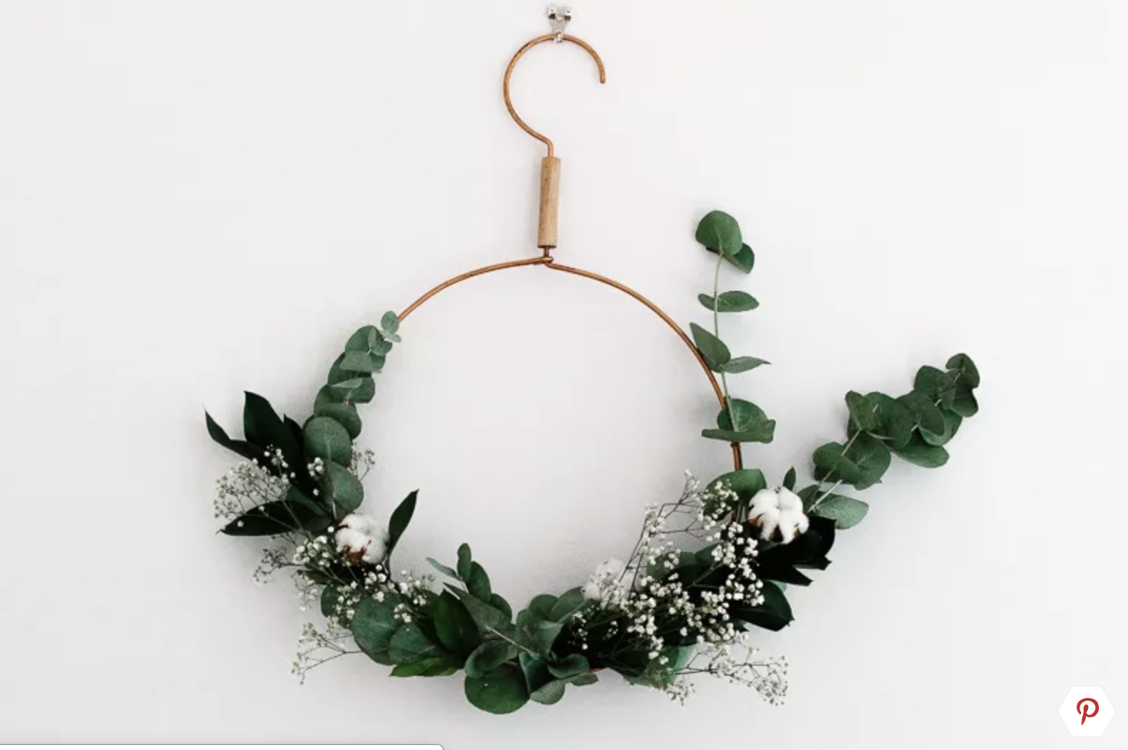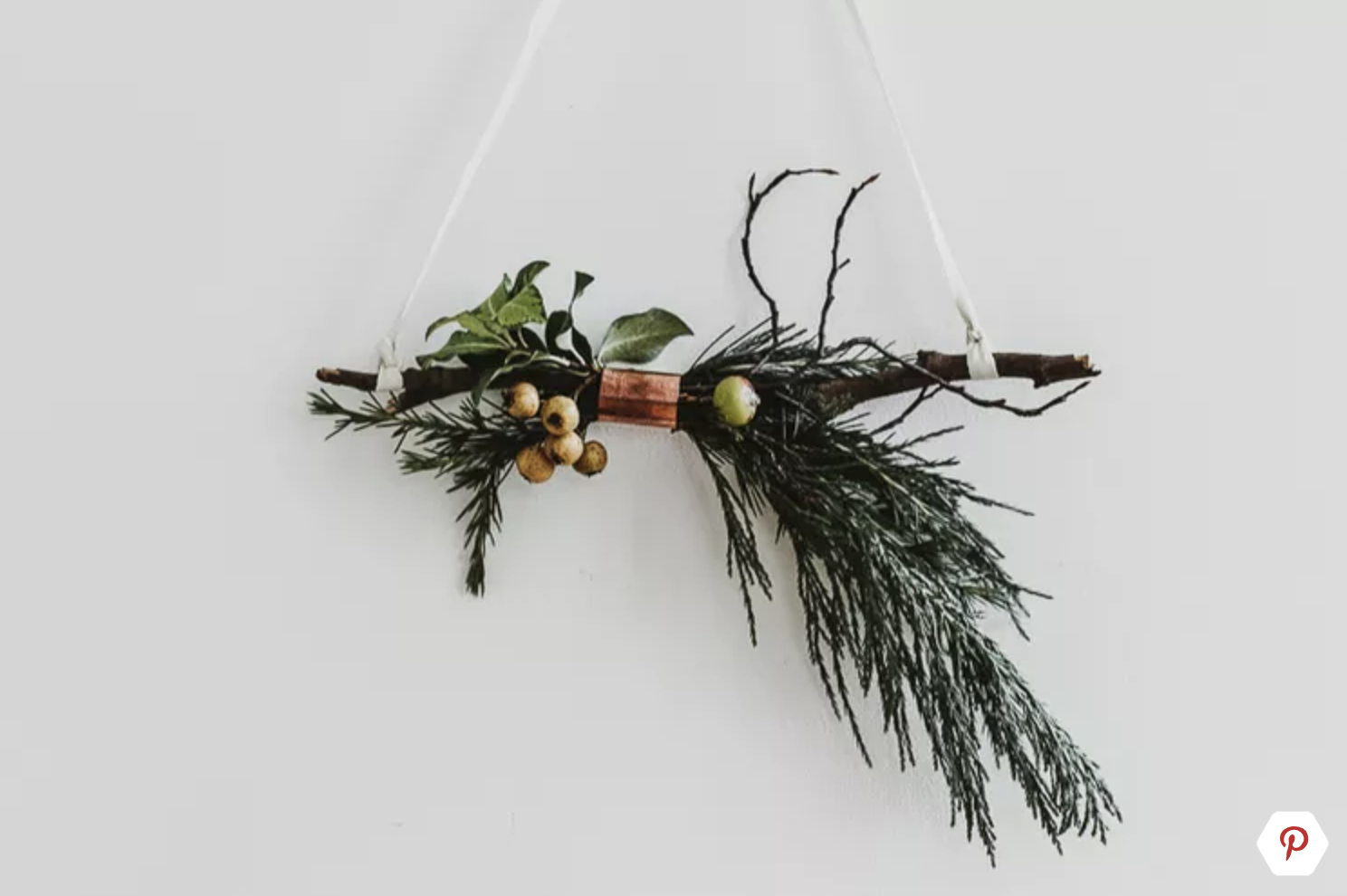 This elegant wreath tutorial by Freckle and Wulff will add a pop of holiday cheer to your living room wall. To create, you'll need a mix of seasonal foliage. This tutorial features eucalyptus branches and holly leaves intertwined with sprigs of baby's breath and dried cotton stalks.