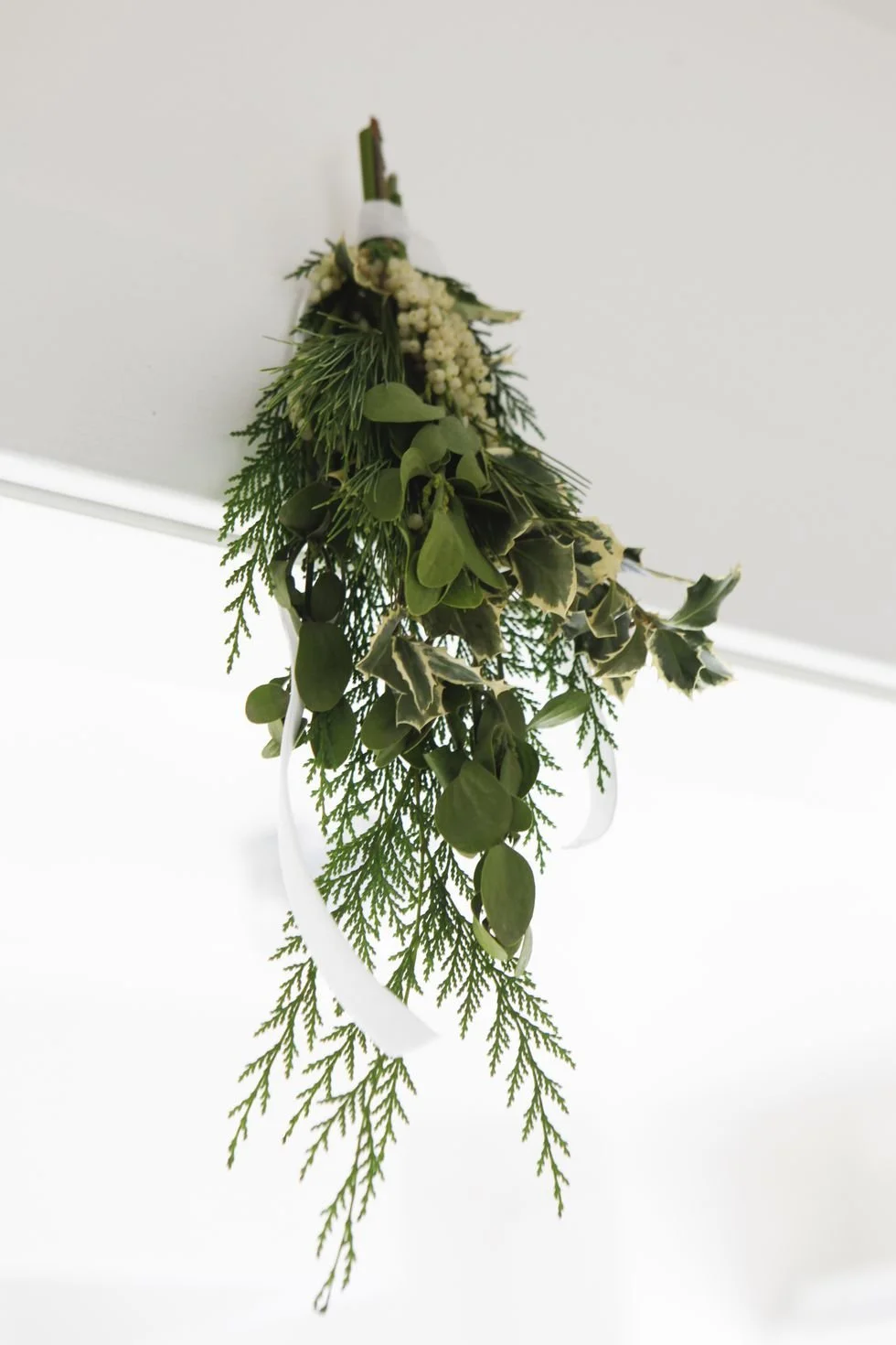 Make use of those out-of-reach areas, and possibly get a holiday smooch in doing so. Rustic Wedding Chic arranged this romantic bundle from cedar, pine, holly and, of course, mistletoe.