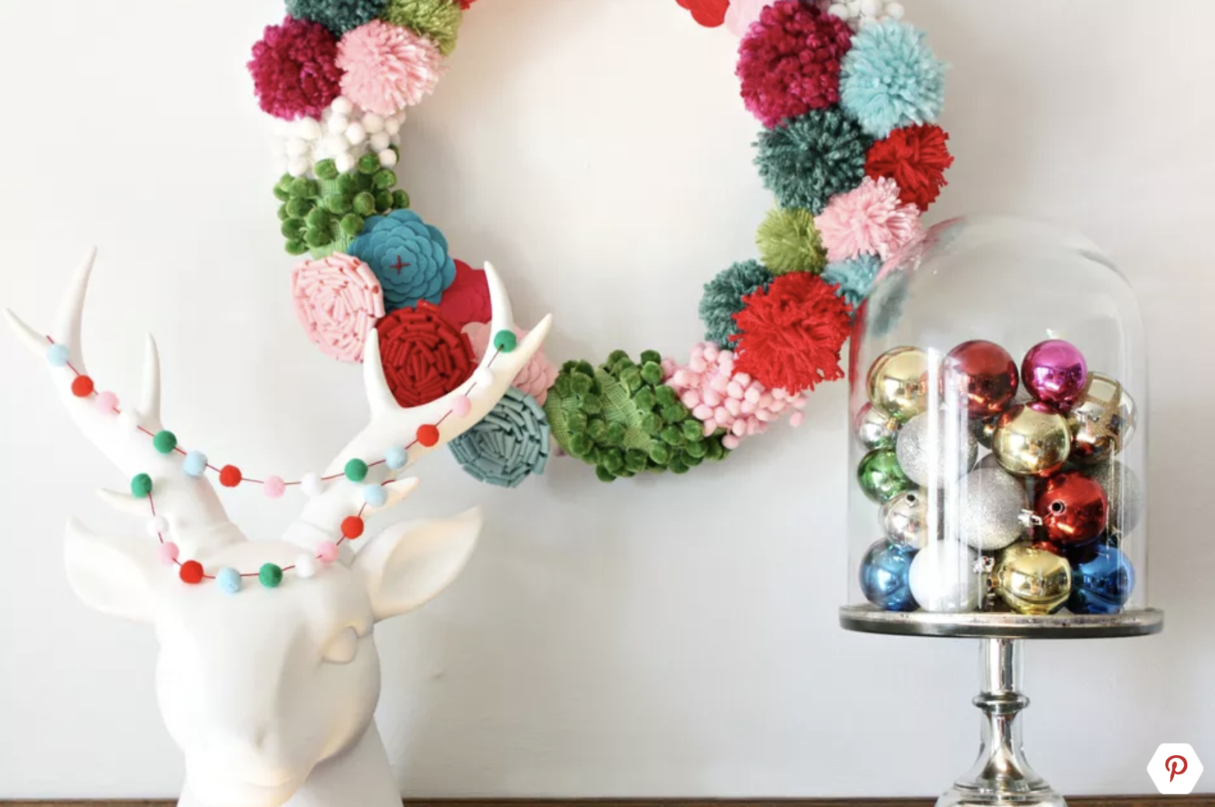 Nothing says happy holidays like a seasonal pom-pom wreath. Kellie from Nest of Posies added some extra eye-catching texture to her decoration using ball fringe and felt flowers. Her tutorial explains how to layer using hot glue.