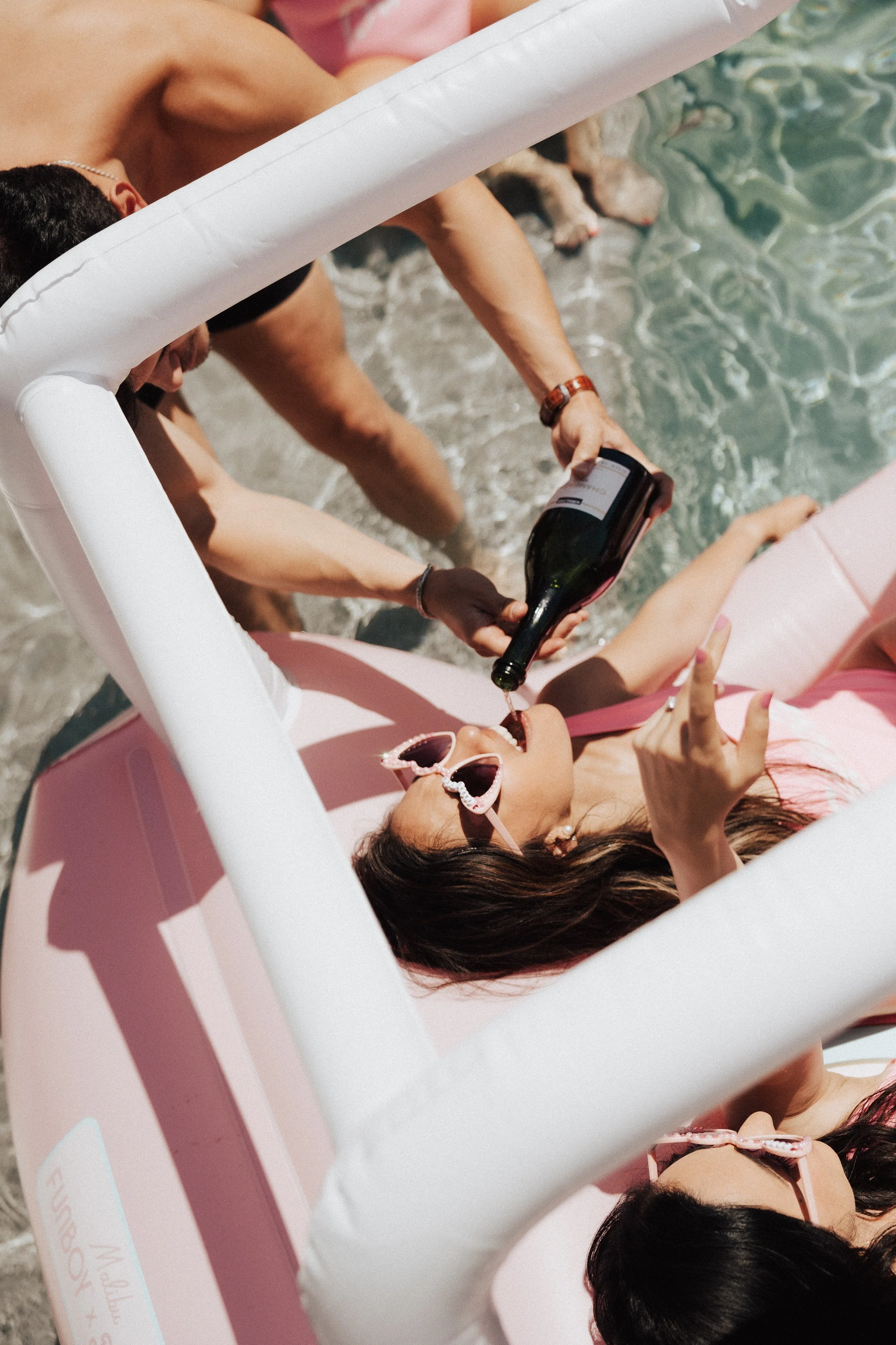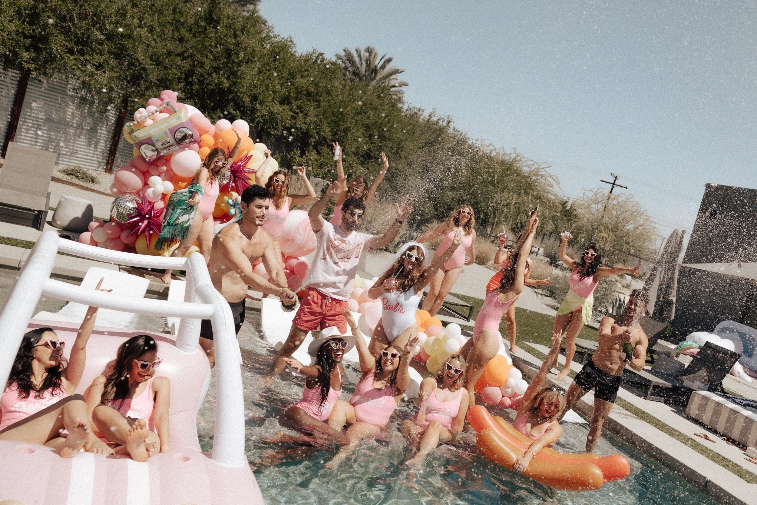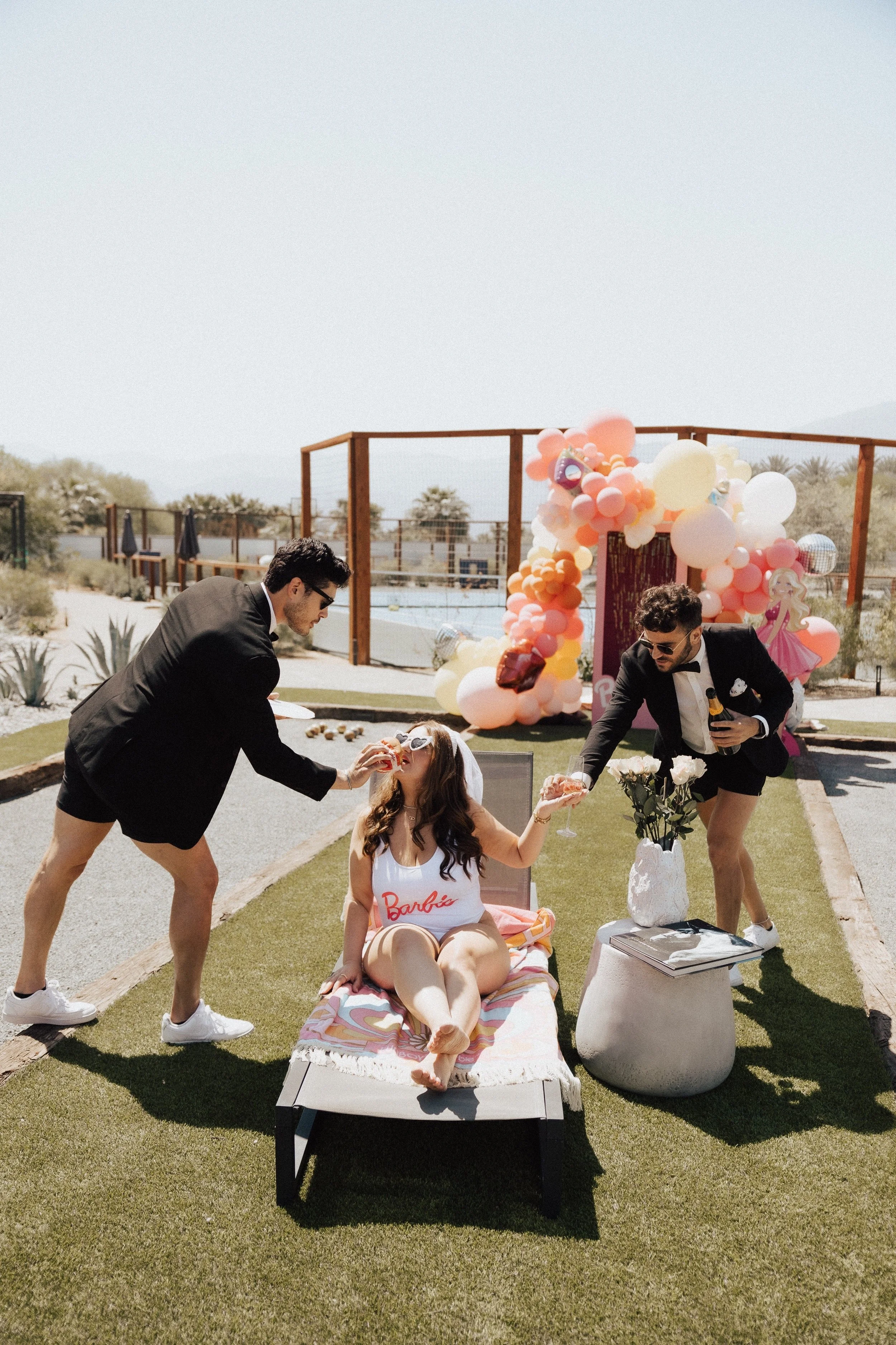 One day, we had a very California Barbie pool party, complete with visors, matching bathing suits, and all of the fun boy Barbie themed floats you could dream of. That night we did an intimate sushi dinner under the stars that was a night I will never forget the category that night was neon Barbie. The next day we did a Barbie Bridgerton drag brunch because this Barbie is an inclusive, progressive Barbie, who likes to party, and appreciates performances by true artist, who are confident and love, showing the world who they are, and what they want to do. We were served custom cocktails poolside, including my favorite frozen drinks and also given poolside massages.