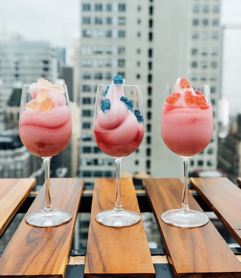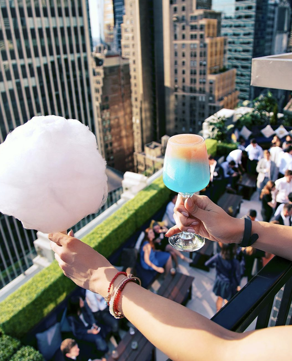 Magic Hour Rooftop is home to the largest indoor/outdoor hotel rooftop in New York City. It’s located atop the Moxy Times Square Hotel and true to the hotel’s aesthetic, it’s got a really playful, hip, colorful vibe. They have an “urban amusement park” with adult sensibilities thing going on here with epic Empire State Building views, a rotating carousel, an oversized topiary garden, and Foreplay—a putt-putt golf course populated by flirty animal sculptures. A menu inspired by state fairs offers shareable light bites including Sausage & Peppers, Maine Lobster Roll, Duck Carnitas Tacos, and the Carnival Burger. And guys, the drinks are soooooo fun—adult capri suns, disco ball punch bowls and so much more.