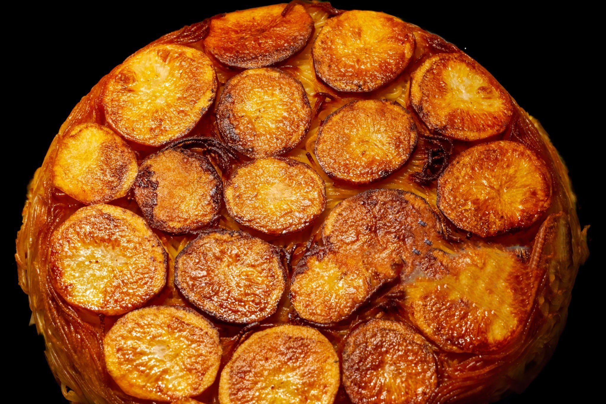 Like all Persian kids, I grew up knowing that the best part of dinner was tahdig, the crisp, golden crust that forms at the bottom of every pot of buttery, pillowy Persian rice. My grandma, and probably every other Iranian Grandma, would turn almost anything into tahdig. My favorite (besides the lavash bread tahdig she would make) was her potato tahdig that would accompany her macaroni. After coating pasta with tomato-rich meat sauce, my grandma would drizzle the bottom of a nonstick pot with oil and line it with thinly cut oval potato slices.