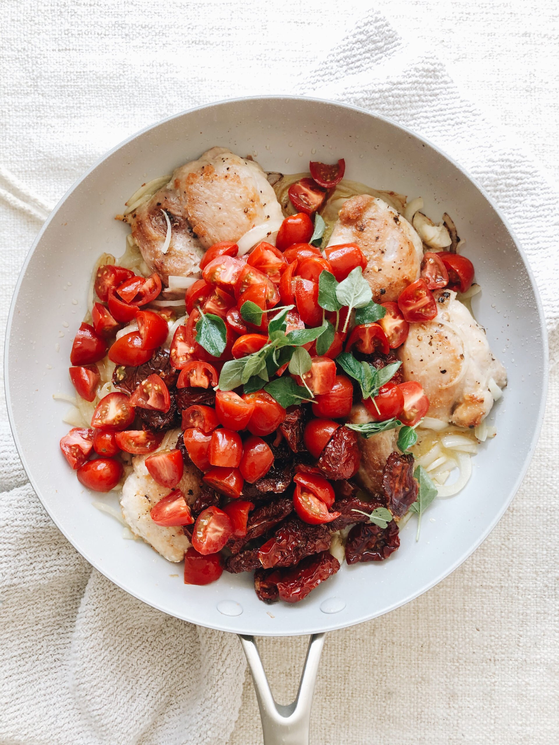 Recipe: Rustic Chicken Thighs with Sun-Dried and Sautéed Tomatoes