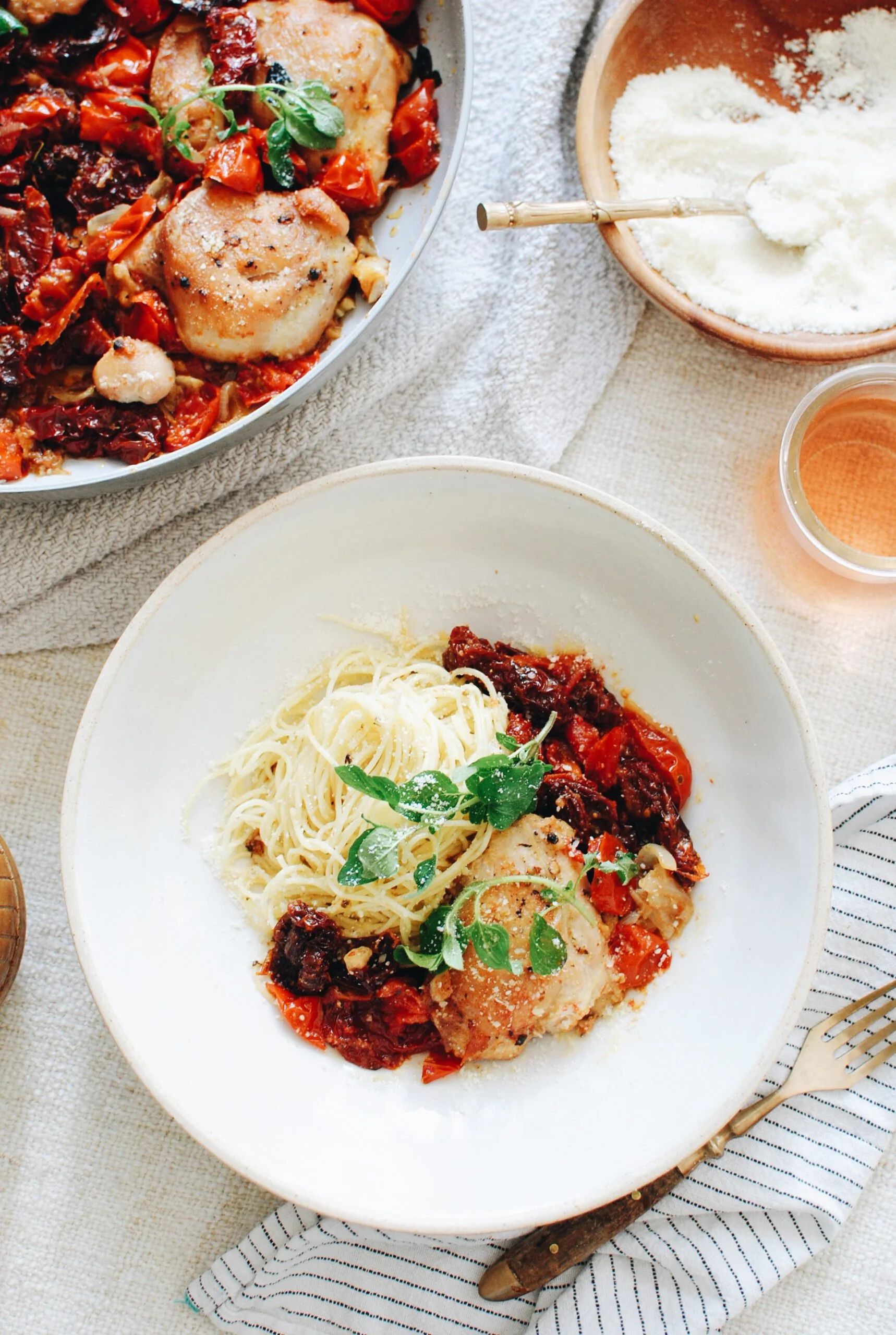 This tasty chicken thigh recipe uses both fresh and sun-dried tomatoes, for an elevated dish that comes together in a snap. With just a few simple ingredients and a few smart shortcuts – like using sun-dried tomato oil right from the jar – you’ll be a weeknight dinner hero in no time. Add pasta and you’re golden!