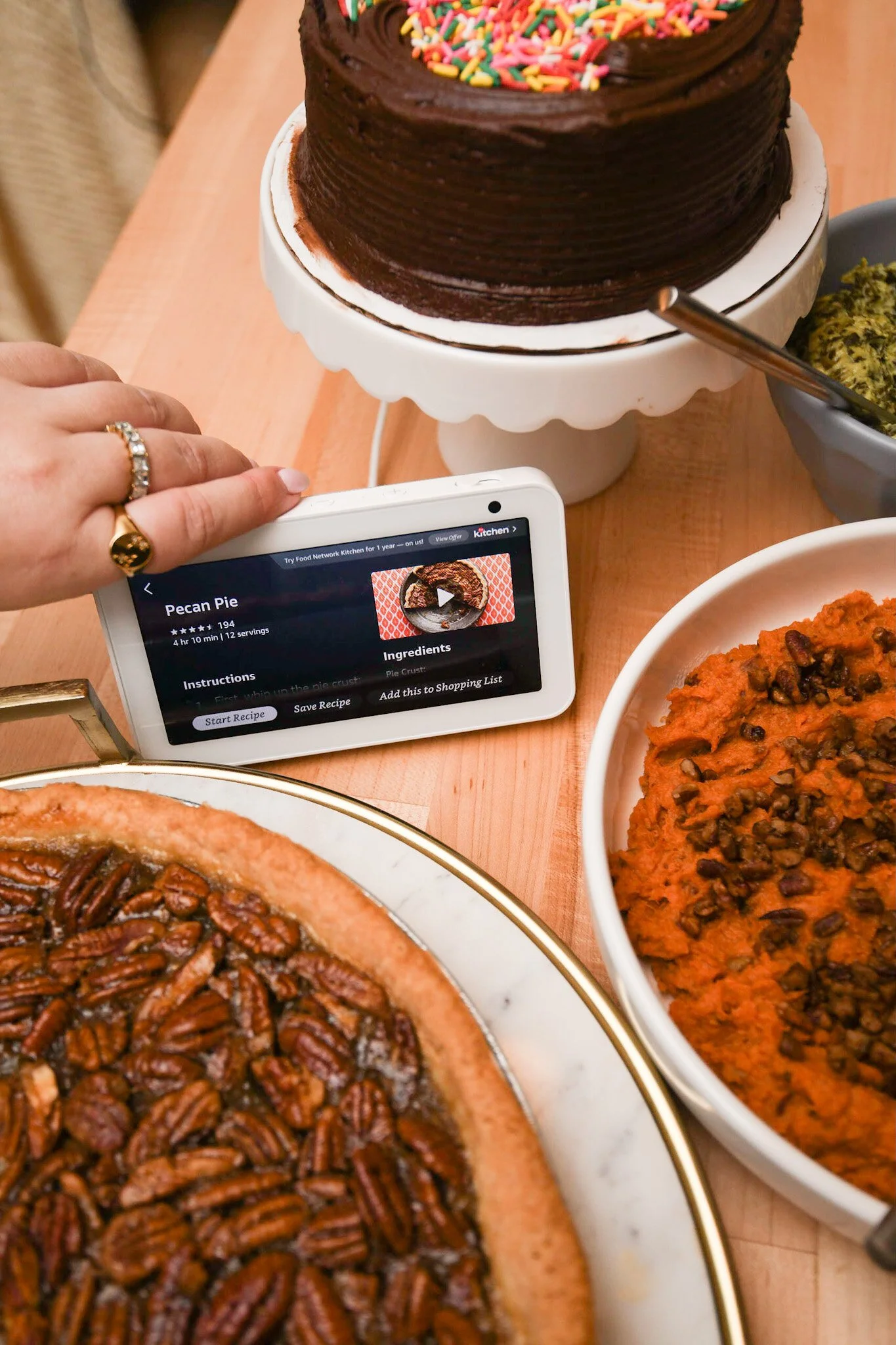 Whether you’re hosting an intimate meal with family, a small Friendsgiving or keeping it low key this year, you can still create new memories and traditions. Even though you’re not cooking for as many people this holiday, Alexa can help you in the kitchen no matter what size your Thanksgiving table is! I used Food Network Kitchen on my Amazon Echo Show 5 to find recipes (I even took a Thanksgiving cooking classes with their chefs like Giada De Laurentiis + The Barefoot Contessa to make the perfect Pecan Pie and Gluten Free, Vegan Chocolate cake).