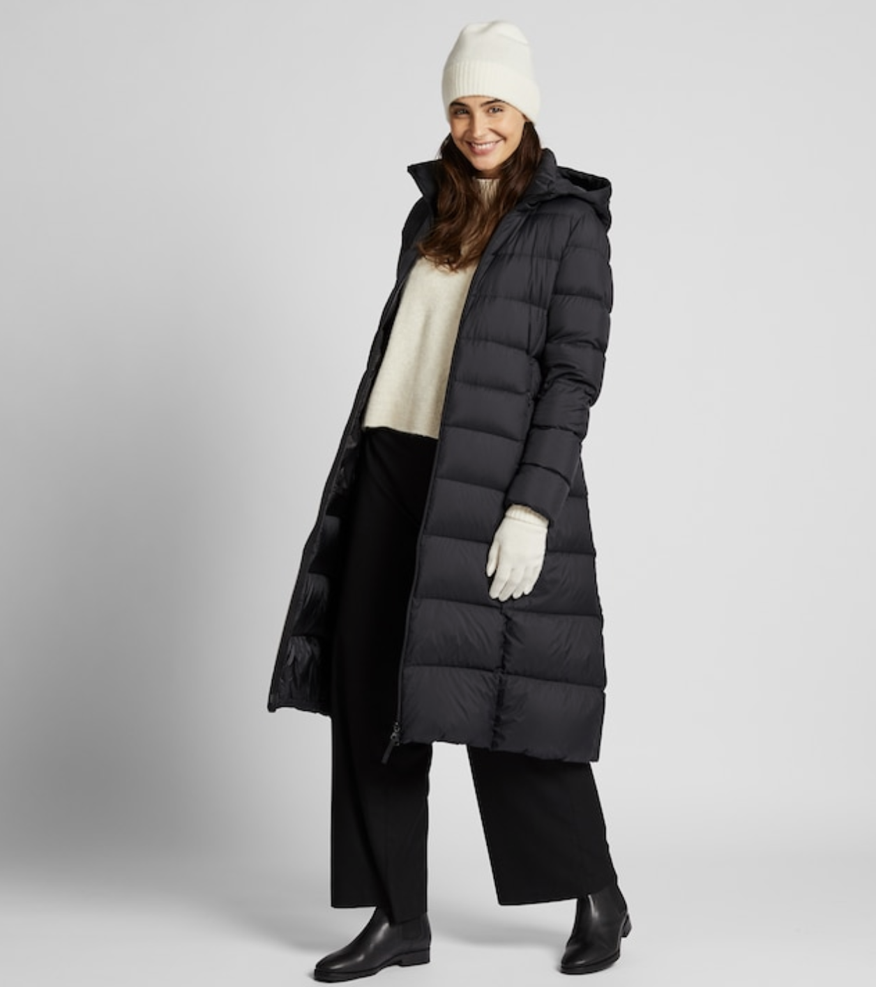 Warmth whenever and wherever you need it just like the classic Uniqlo puffer with water repellent coating, but with a longer silhouette for those of you who prefer slash need the extra length and warmth. I love a longer option for the super frigid months and/or when I’m wearing leggings, dresses or skirts.