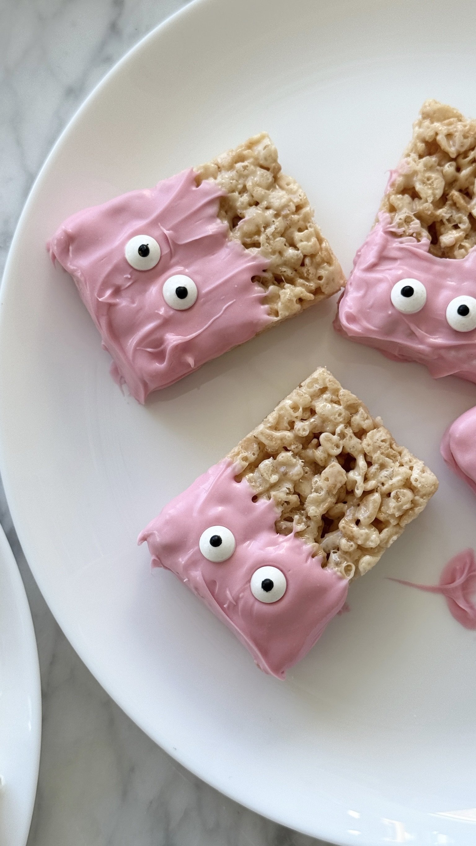 Dip & Drip: Dunk your Rice Krispies Treats halfway into the melted candy. Go for full coverage, or do a little half-dip to create a ghostly effect. Place them on parchment paper to let the candy harden up.
