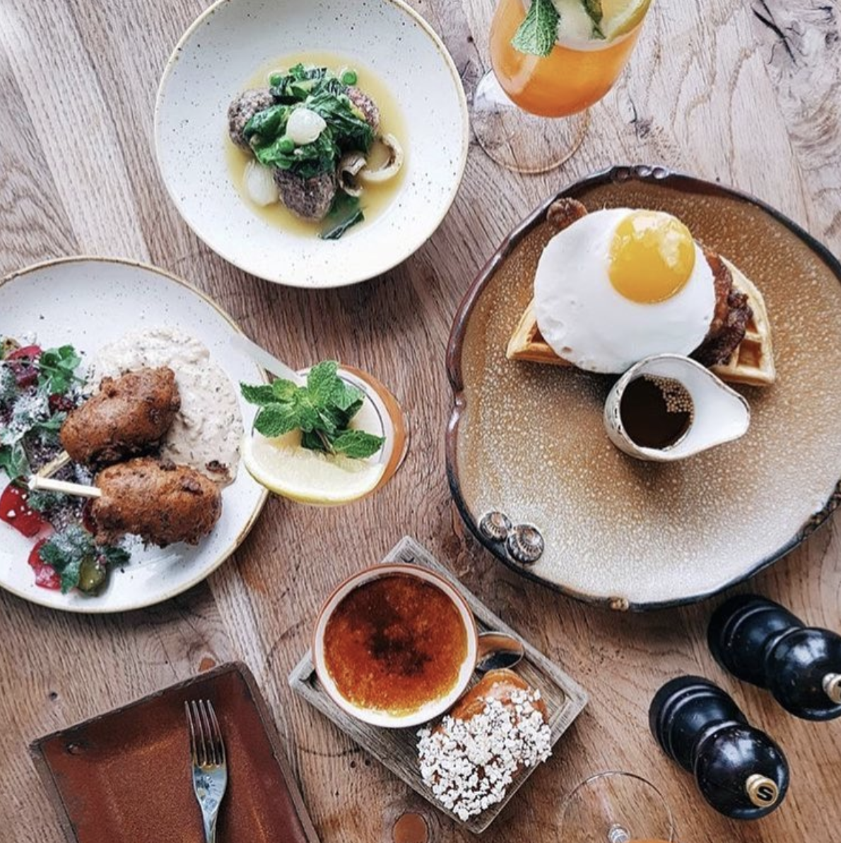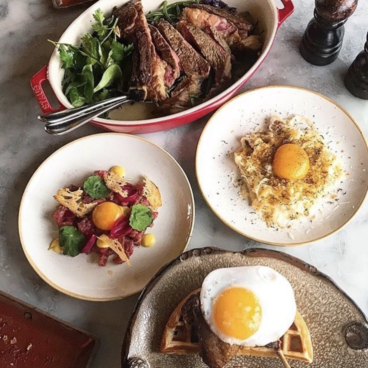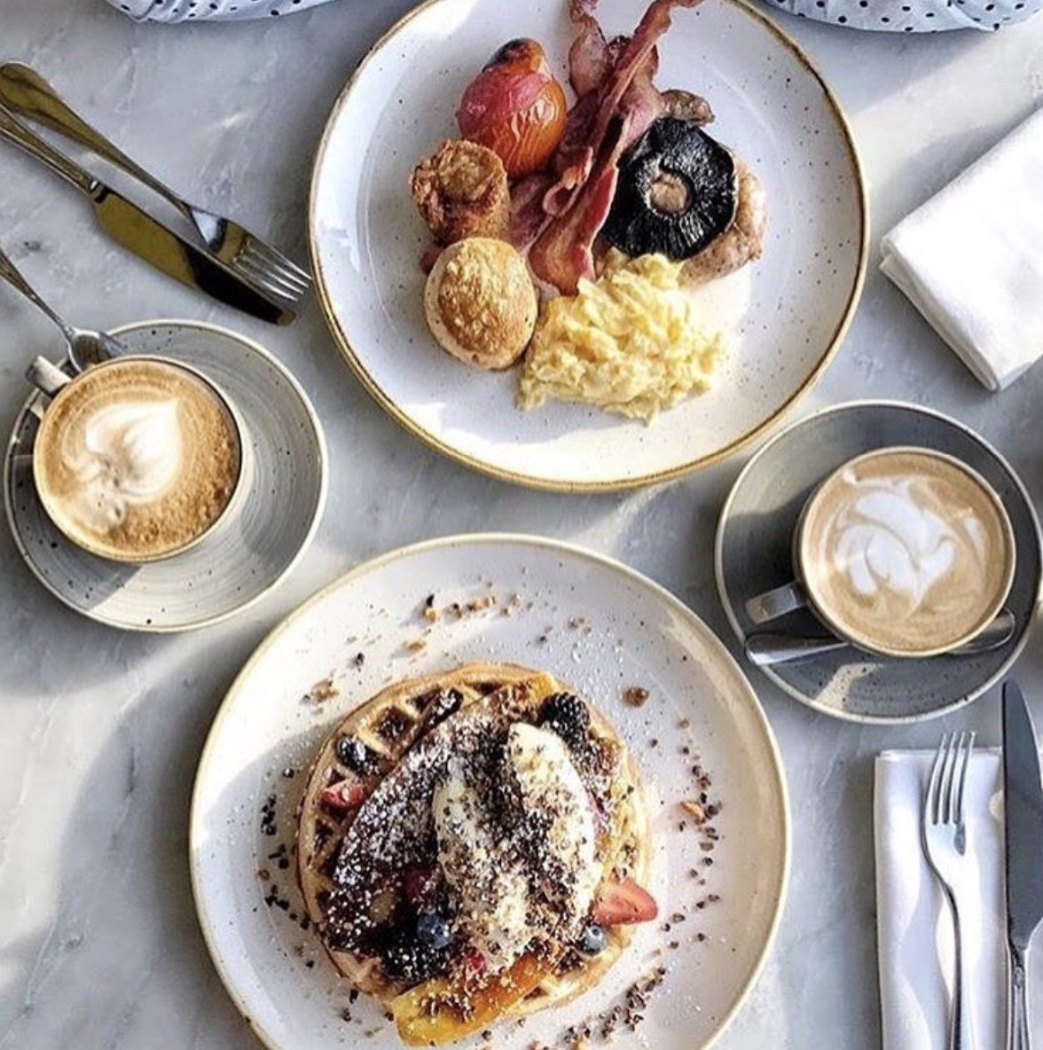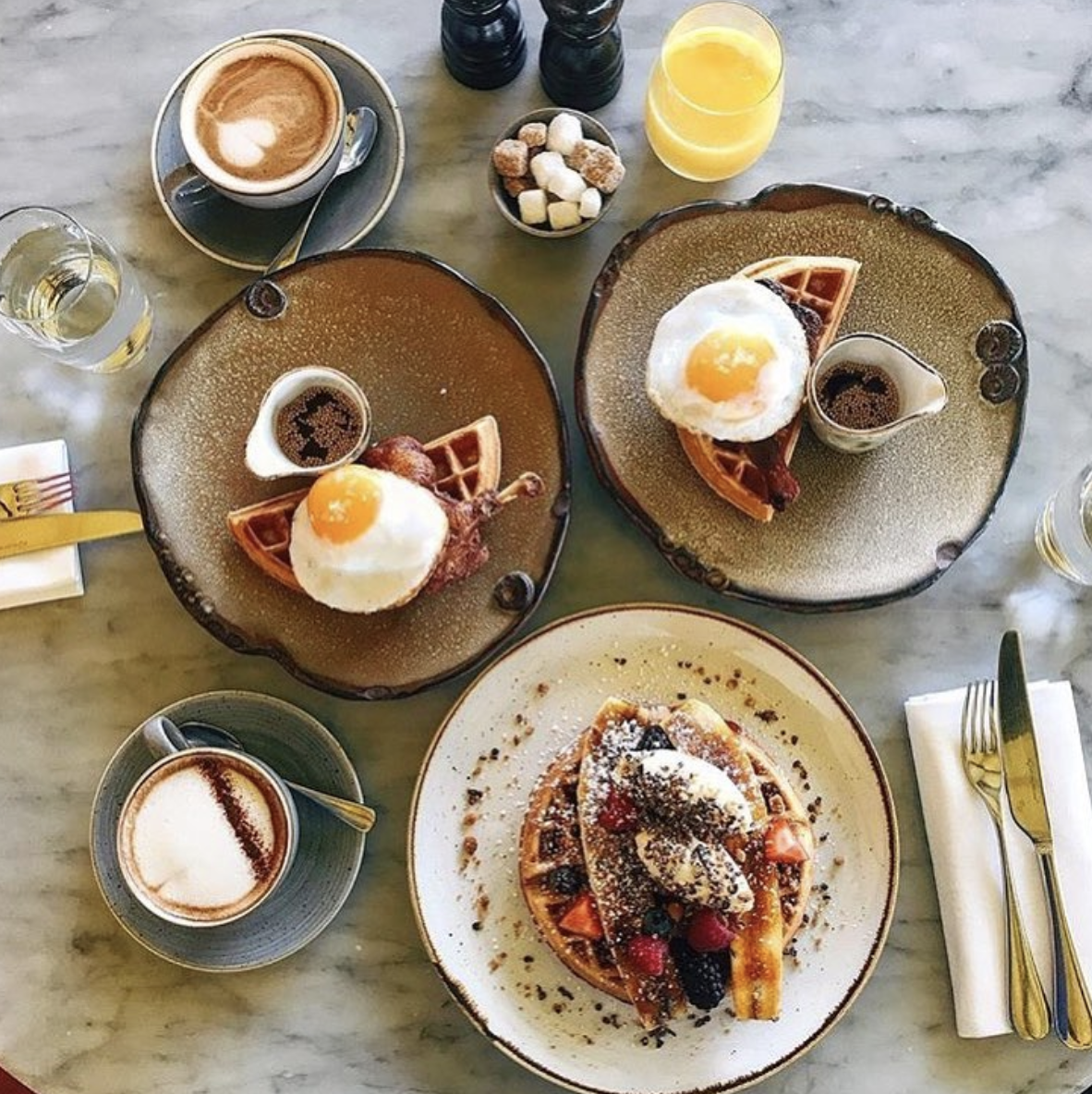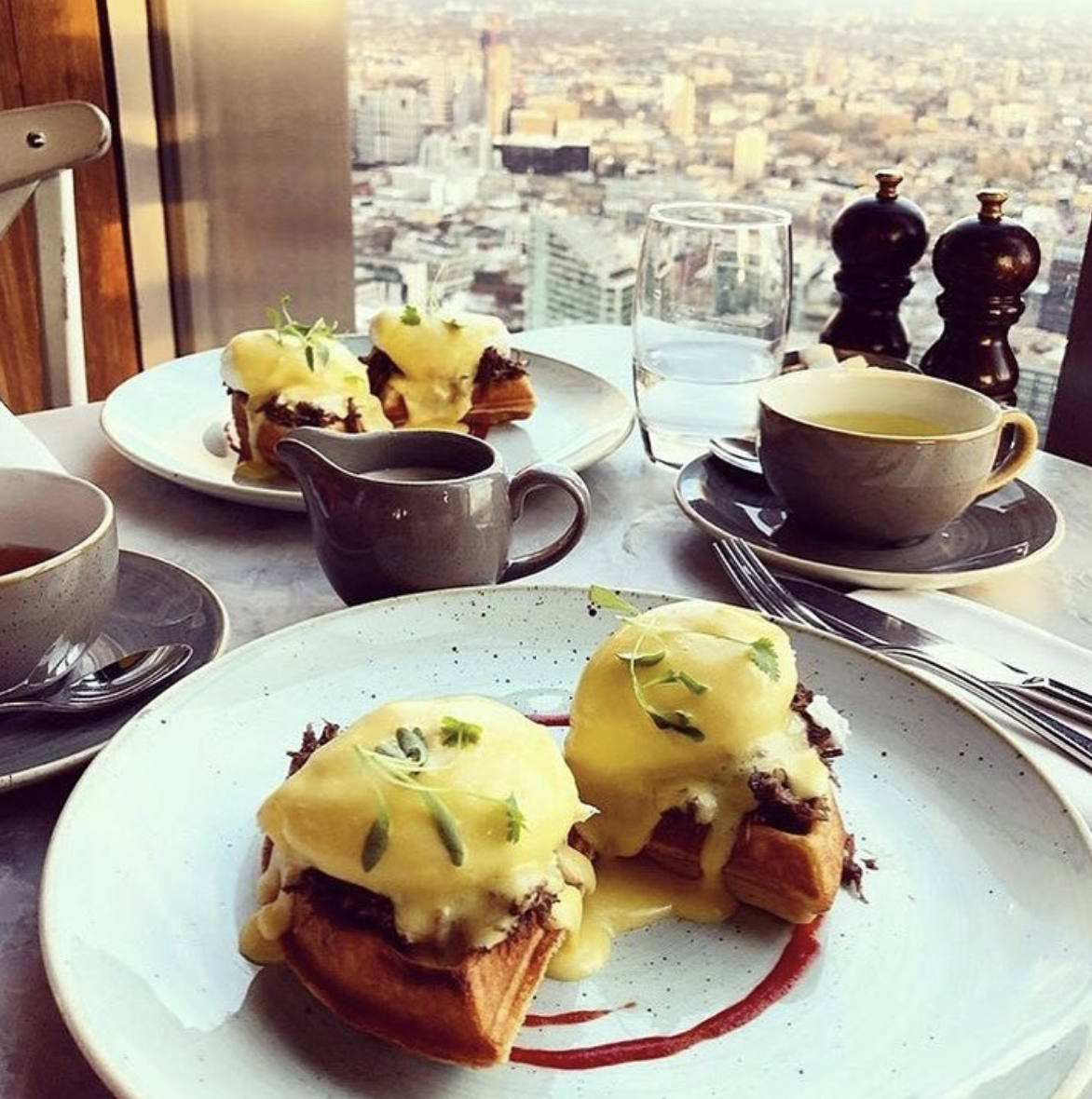 Duck and Waffle is not for the faint of heart. If you’re afraid of heights, you should either skip Duck and Waffle or confront your fears because this restaurant is the highest restaurant in London. The view from the Heron Tower, where this restaurant is located, is absolutely breathtaking (perfect for the 'gram). Perhaps the best thing is that it is open 24/7...I mean, what could be better than that? Oh, yes, and unlike most touristy fancyish spots, the food here is more than good.