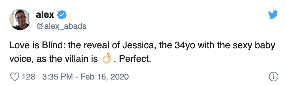 Silly me to have believed her voice is really that girly and high-pitched from the start! I quickly learned that Jessica is putting on a fake voice for the guys in the pods. When the camera cuts to her seconds after a pod scene for an interview with the producers, her voice is totally normal/unspecial. Ugh, that is so embarrassing for her. Maybe she doesn’t even realize she does that and it’s her way of flirting? IDK I feel bad.
