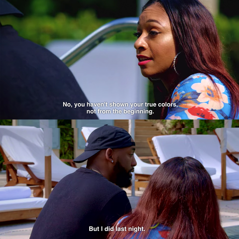 Poor Diamond and poor Carlton. They didn’t have a great last scene on this here show. On one of the vacation episodes, Carlton finally came out to Diamond as bisexual, and let’s say the conversation didn’t end in cupcakes and rainbows. Diamond was surprised at this revelation (I mean, of course she was – he never told her this info in the pods) and Carlton took her surprise as disapproval and rejection, which is sad. It’s a big insecurity for him. Anyway, it turned into a big fight because they disagreed on when he should’ve disclosed this info to her. Here are my favorite quotes from the fight:
