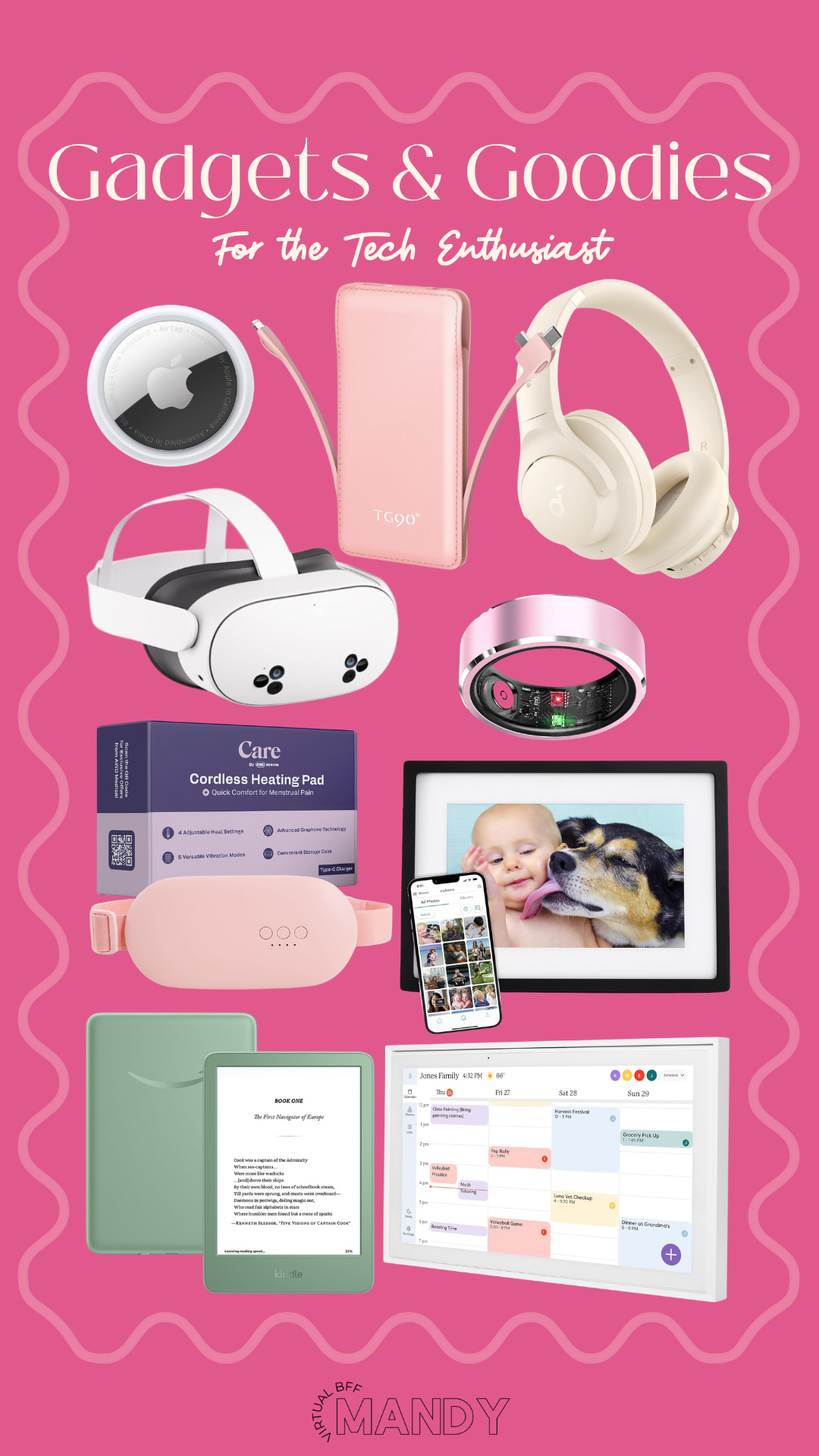 For the wellness-minded woman in your life, this tech gift guide is all about merging innovation with self-care. We’ve curated a selection of cutting-edge gadgets that enhance well-being and elevate everyday routines. From a VR headset that transports her to serene landscapes for meditation to a sleek fitness ring that tracks activity and sleep with effortless style, these picks are designed to inspire a balanced lifestyle. Plus, a digital wall calendar helps her stay organized and mindful of her goals. Get ready to empower her journey toward wellness with these thoughtful, tech-savvy gifts that bring a little magic to her everyday life