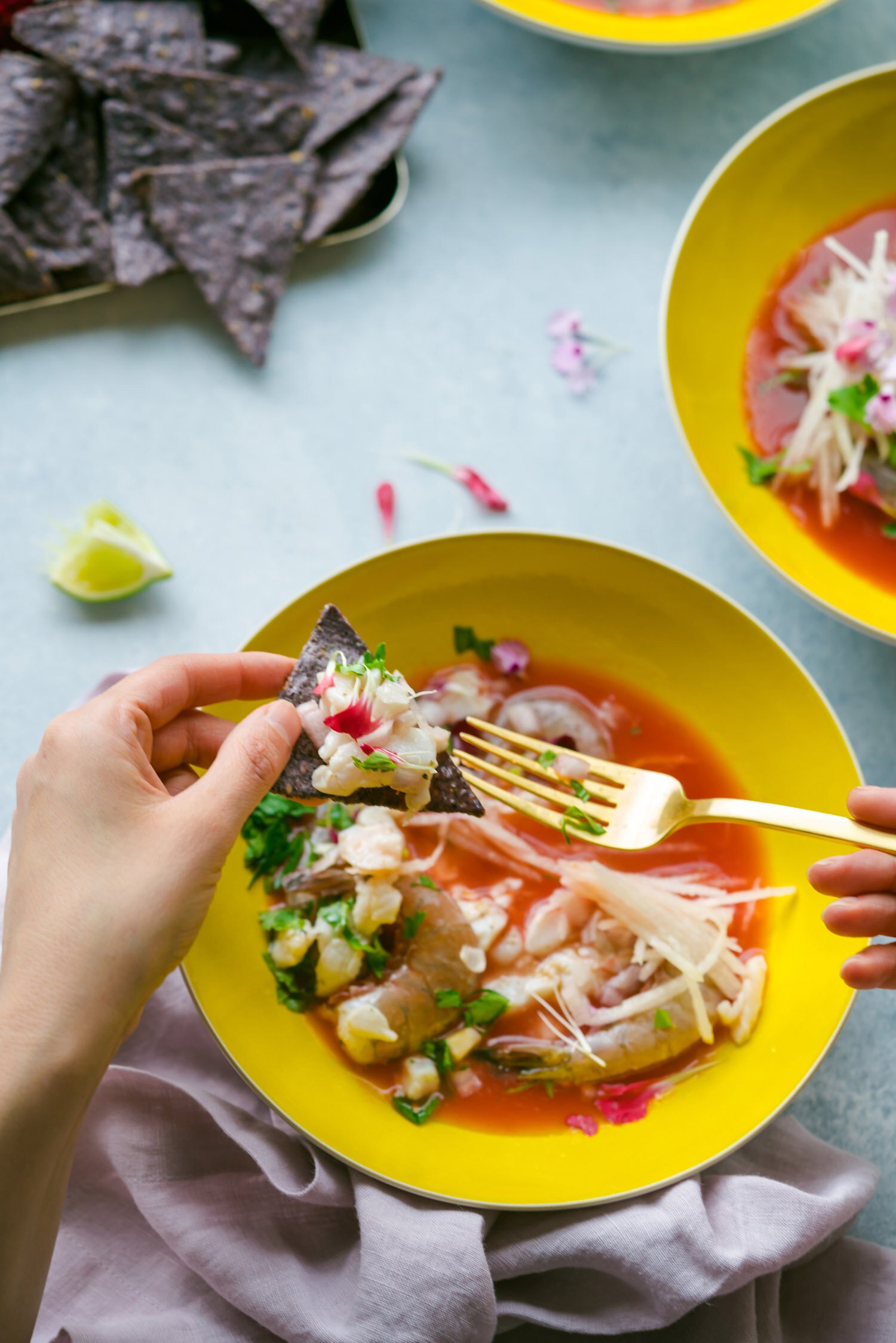 So I kinda went ceviche crazy while I was down in Mexico taking some time off and doing some research (read: eating my weight in tacos), and man oh man, there’s nothing better than a refreshing bowl of fresh, citrusy seafood served with a side of avo, chips, and chiles.