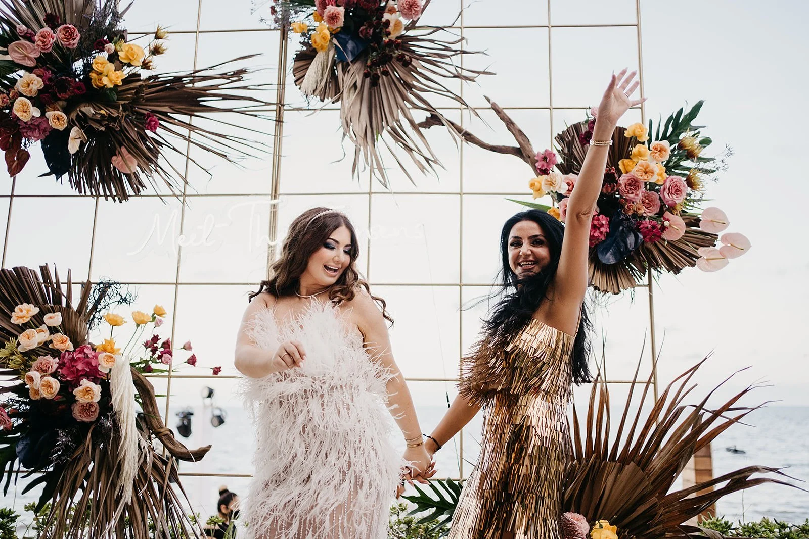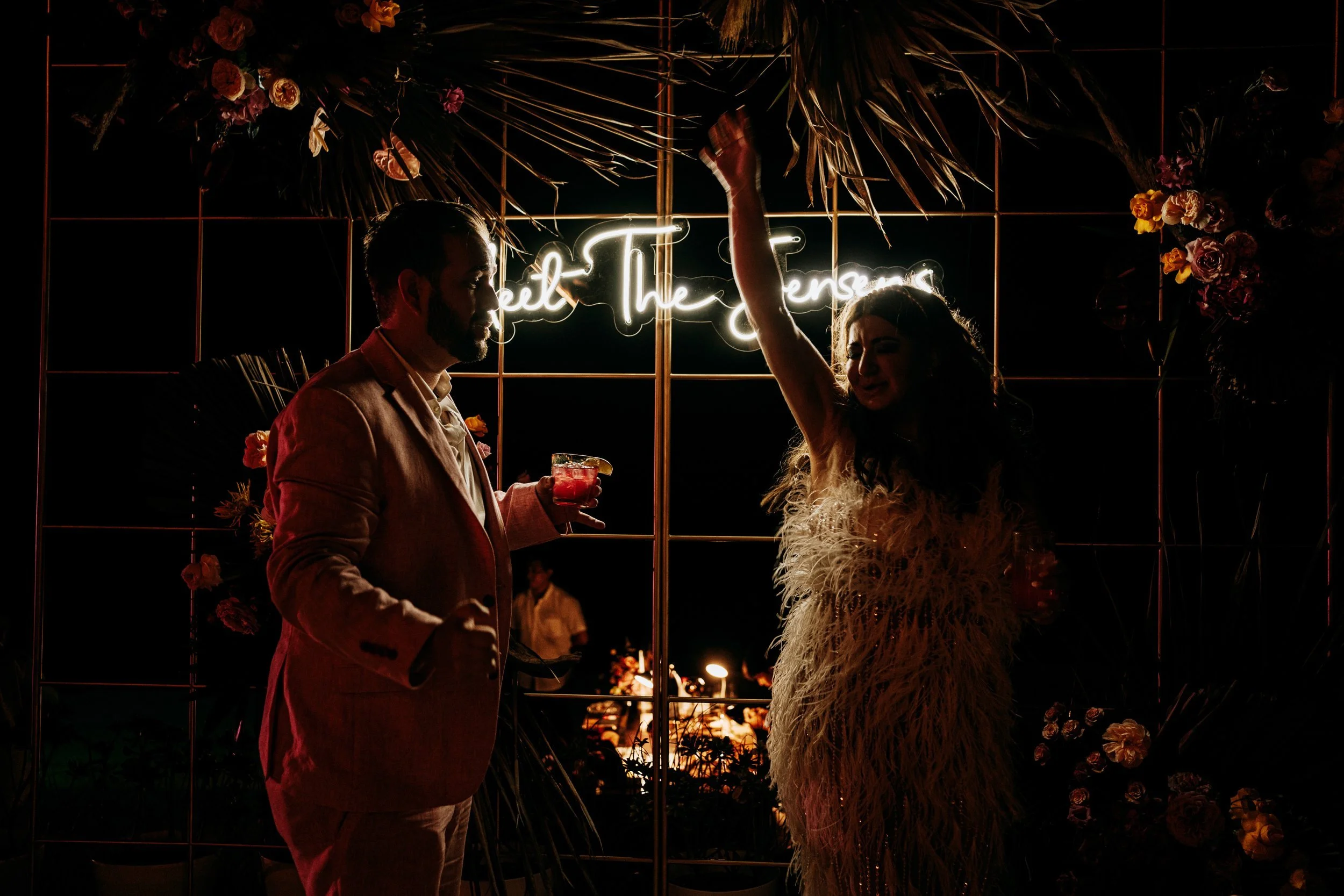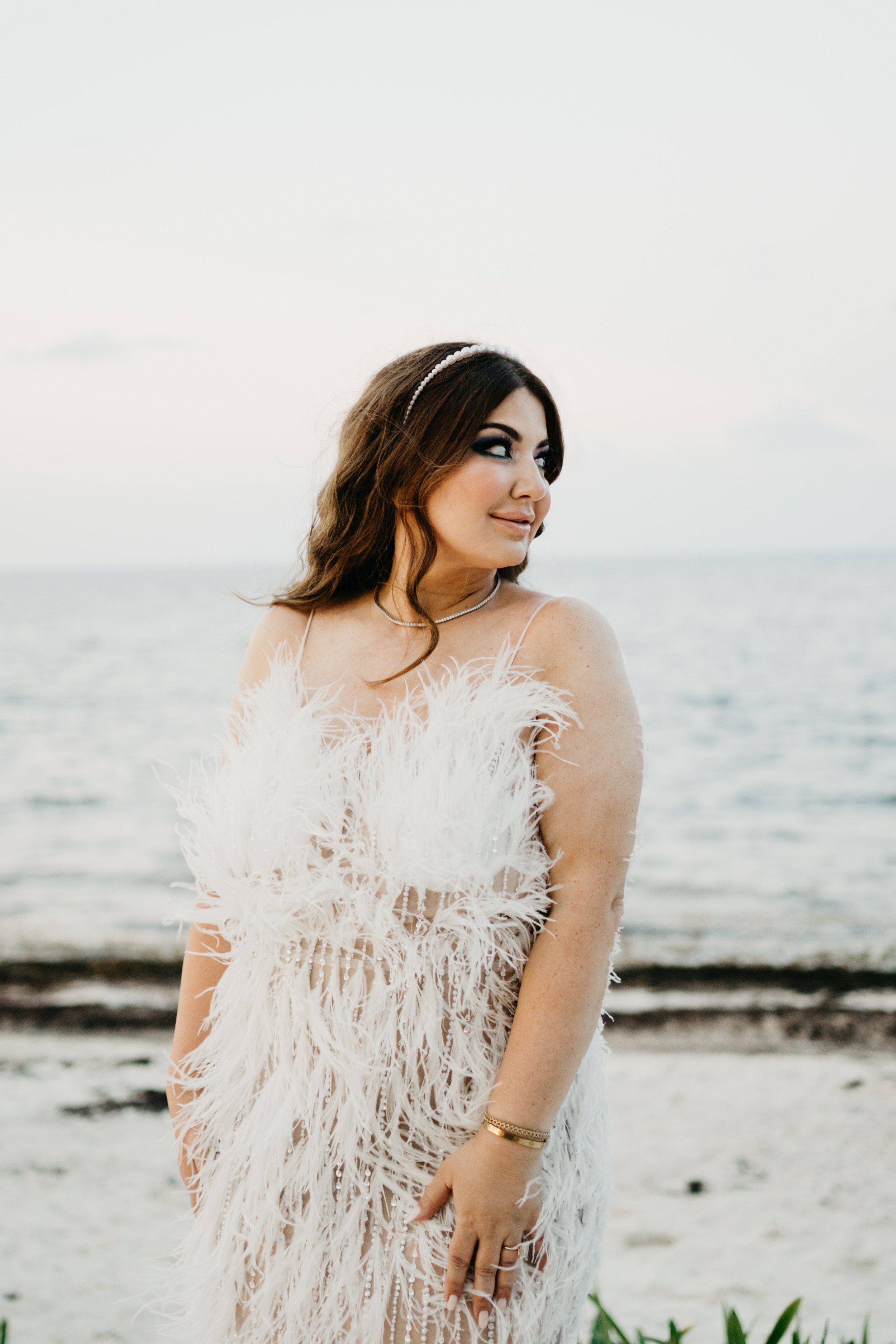 I was also absolutely obsessed with my attire for the welcome party. I custom designed my feather frock with a seamstress and it turned out perfect.