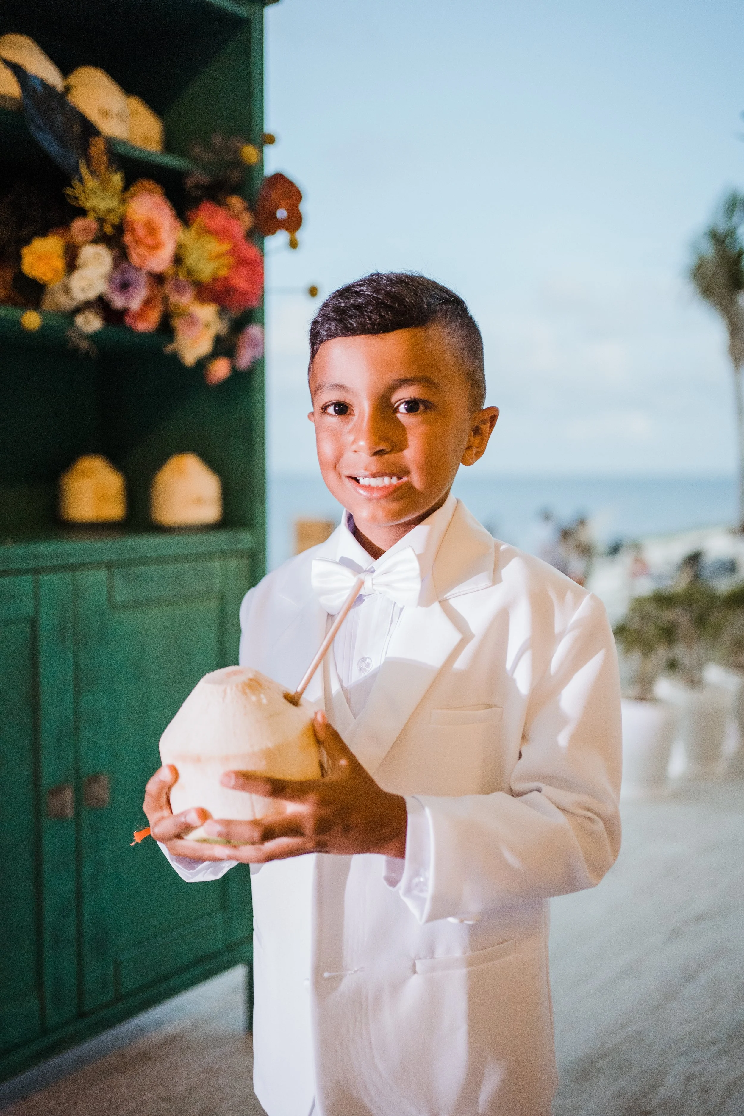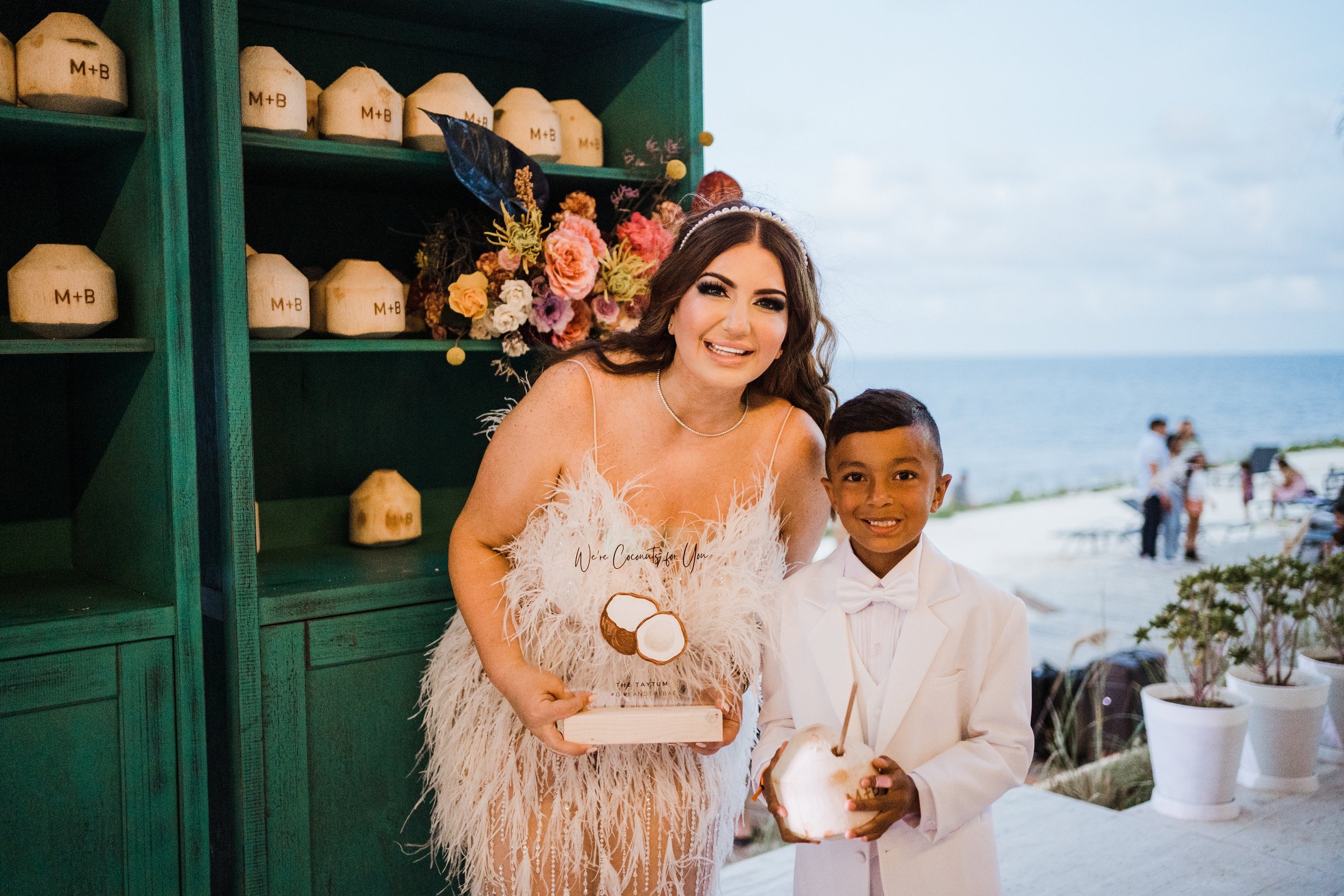 Our food at the welcome party was a sushi forward menu, which is our favorite, as well as fresh churros and personalized fresh coconuts named after our nephew and ring bearer, Taytum. Taytum and I have a tradition of drinking fresh coconut juice together so that was truly such a special touch.